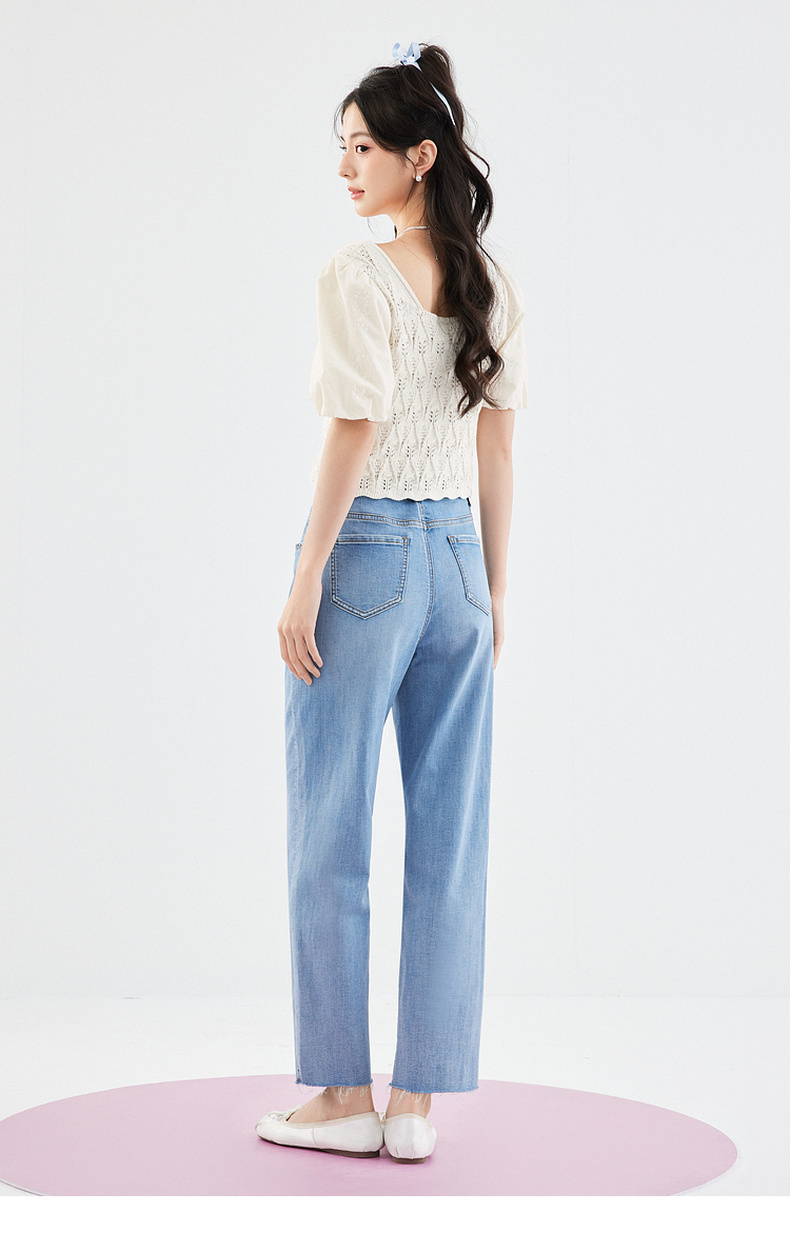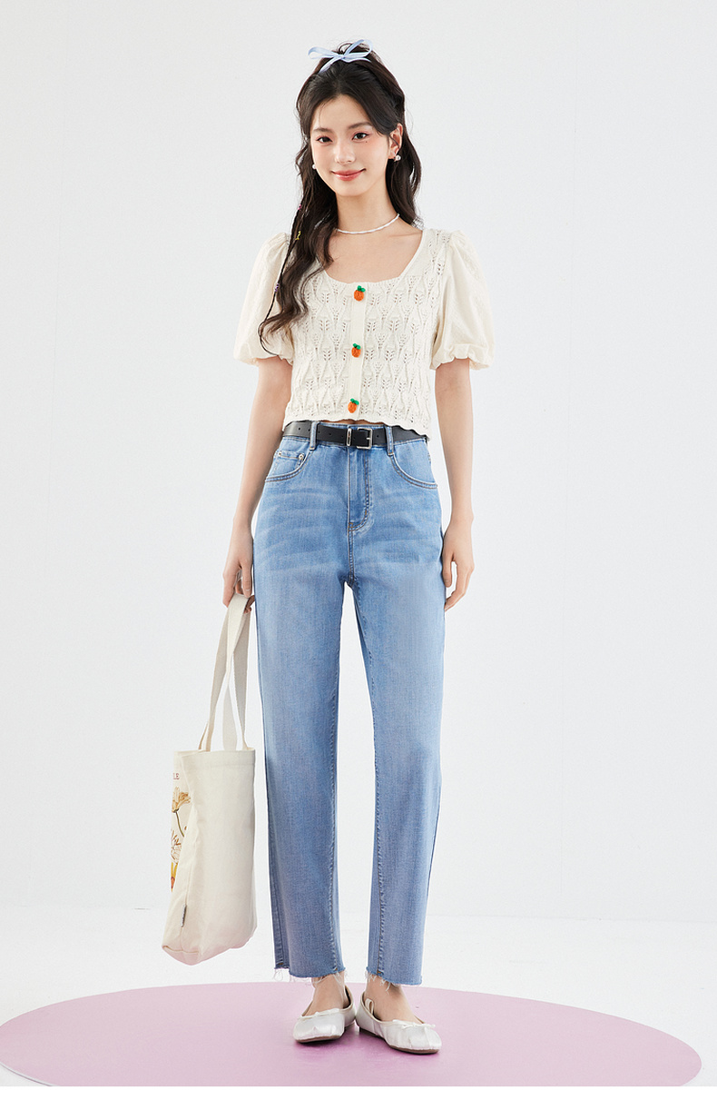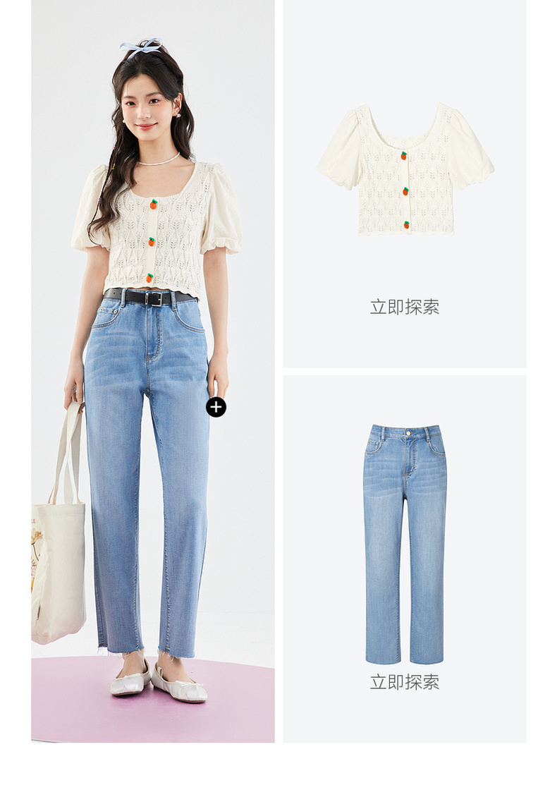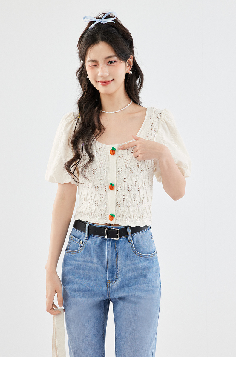 【严选】诗凡黎白色方领镂空针梭拼针织衫2024夏新款设计感流行上衣女SF4330771