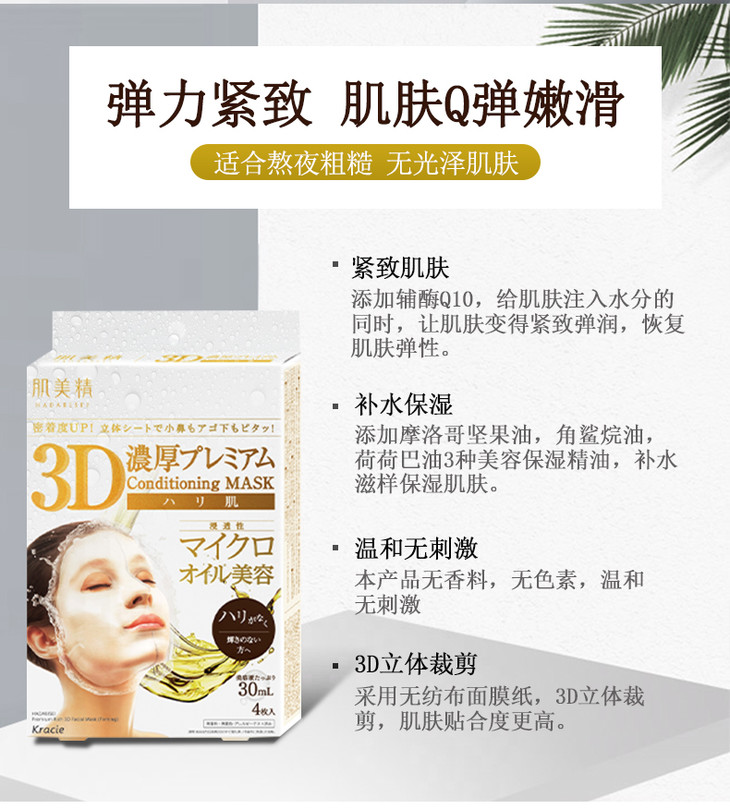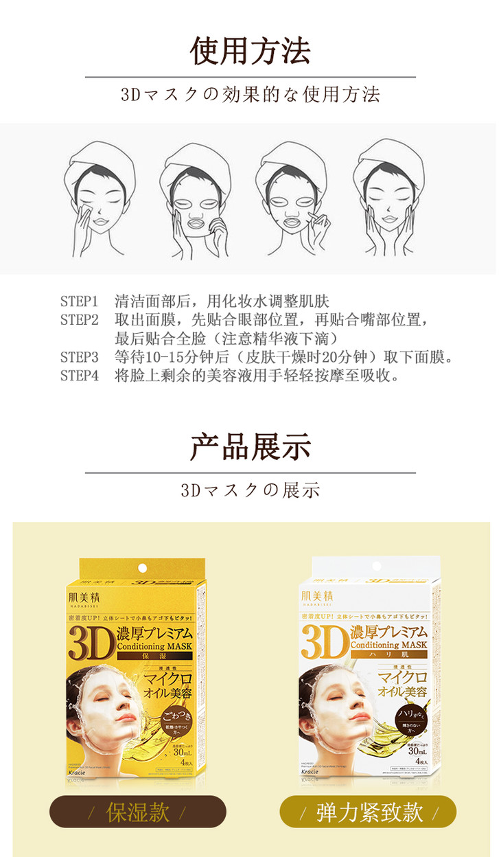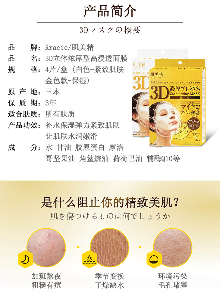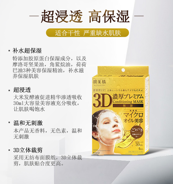 日本/肌美精3D面膜/4片/黄色3D保湿-会员6折