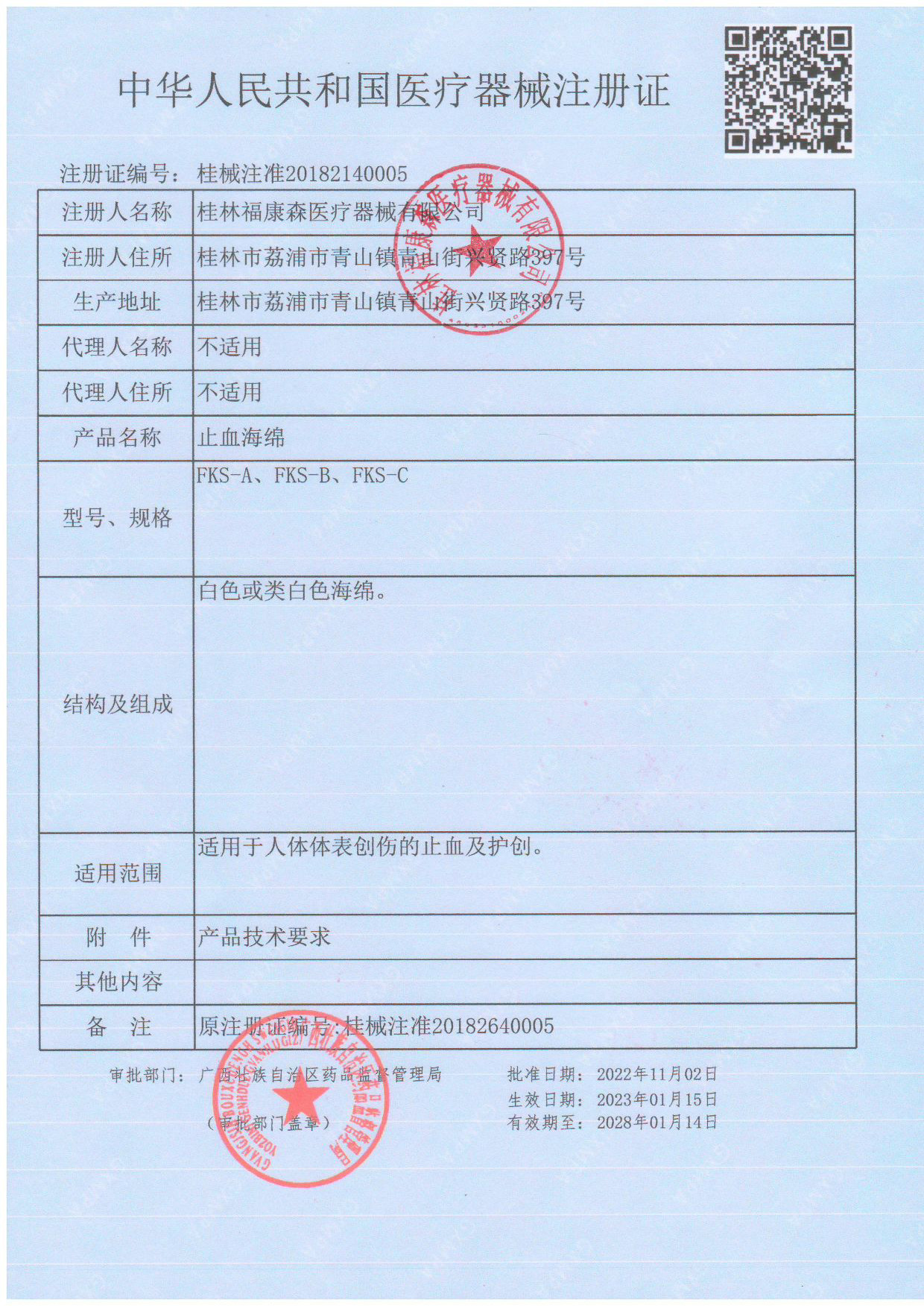 注册证号:桂械注准20182140005