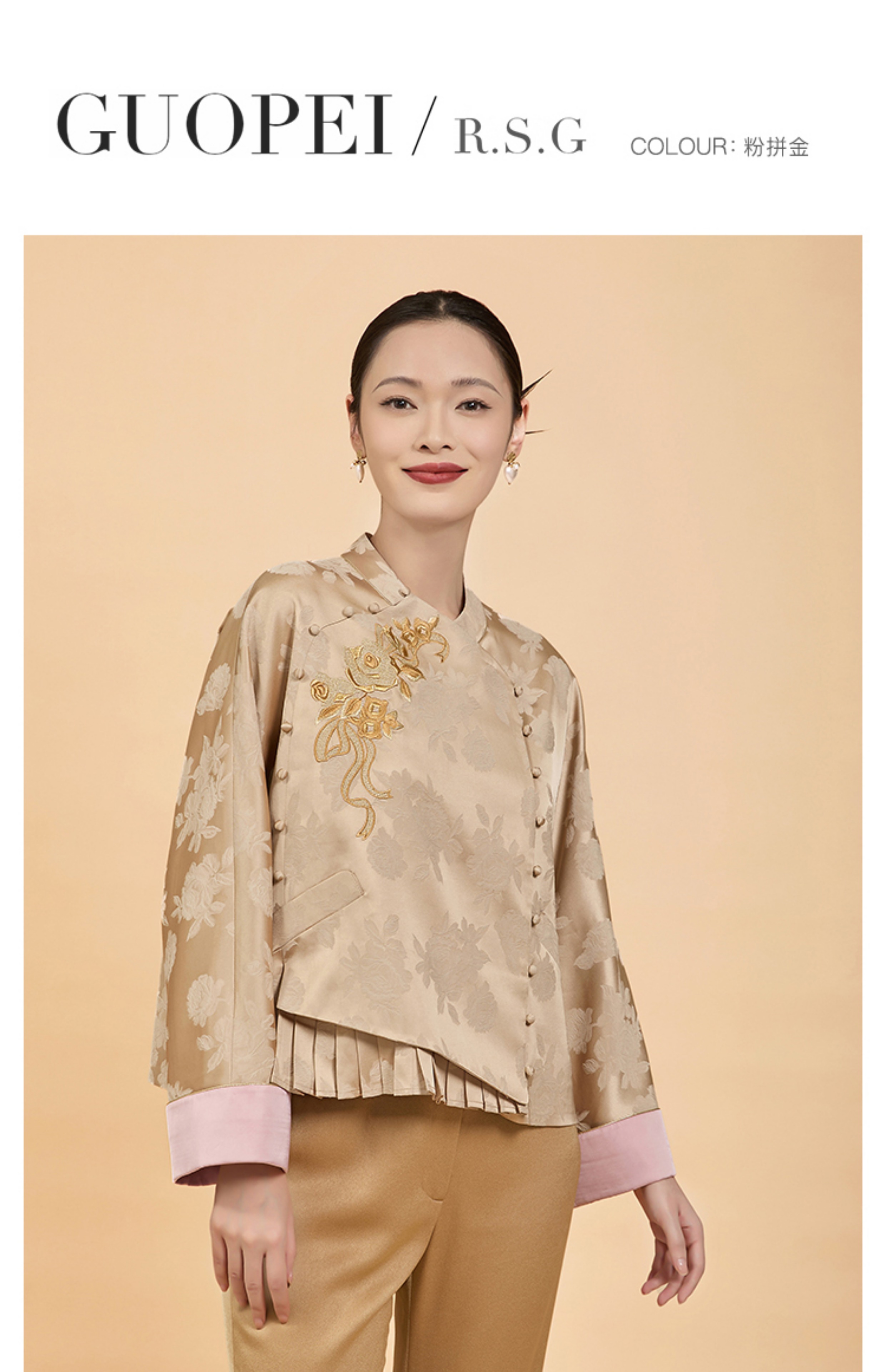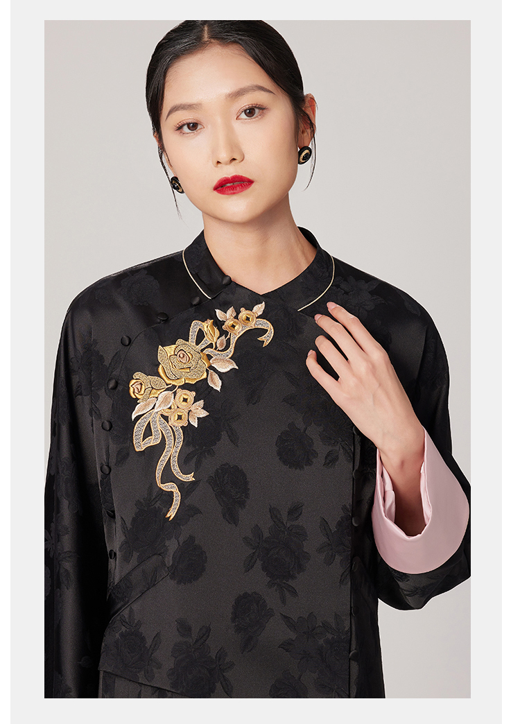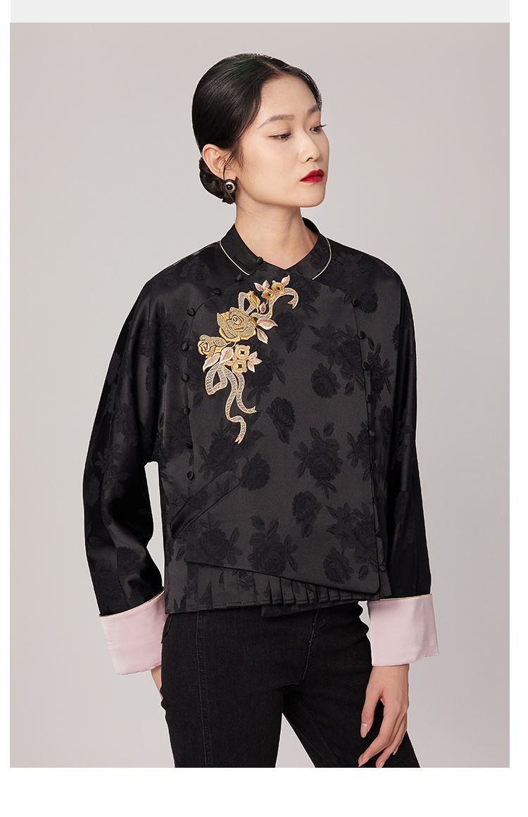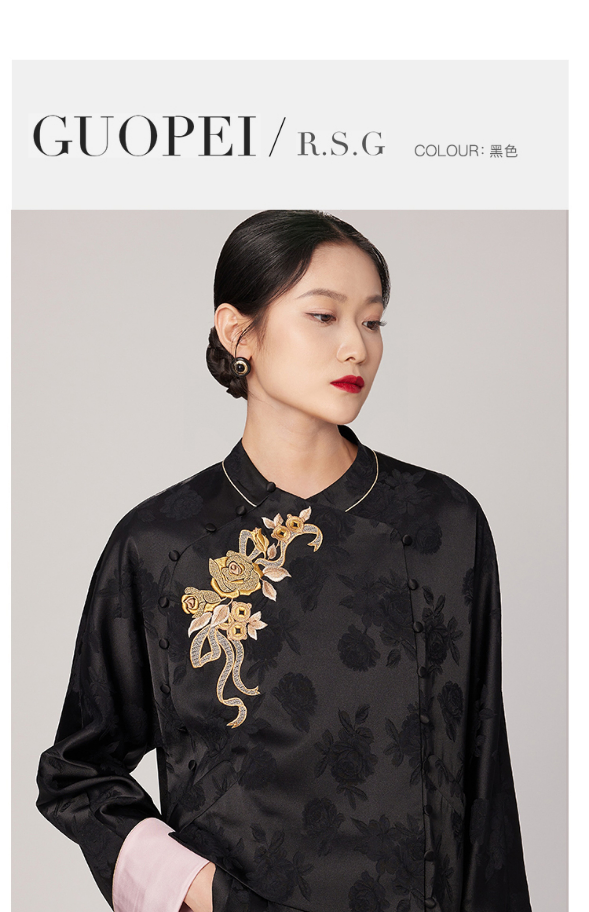 郭培成衣品牌精品系列飘带玫瑰刺绣中式上衣