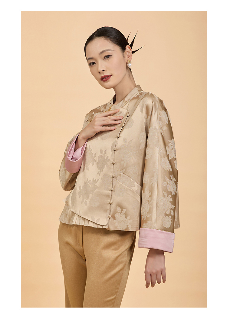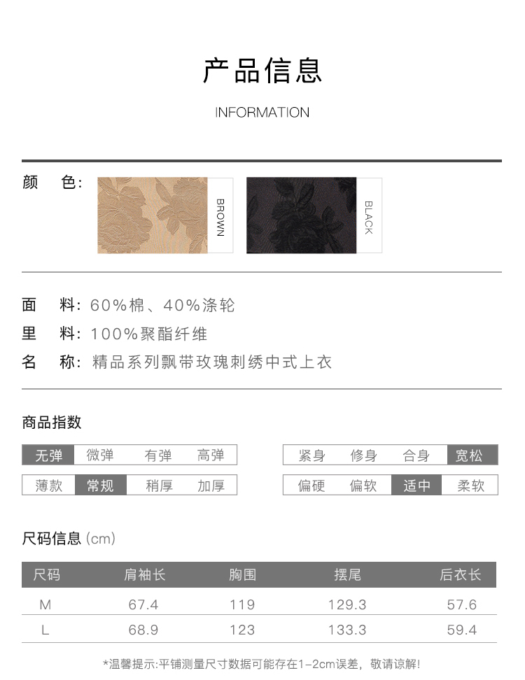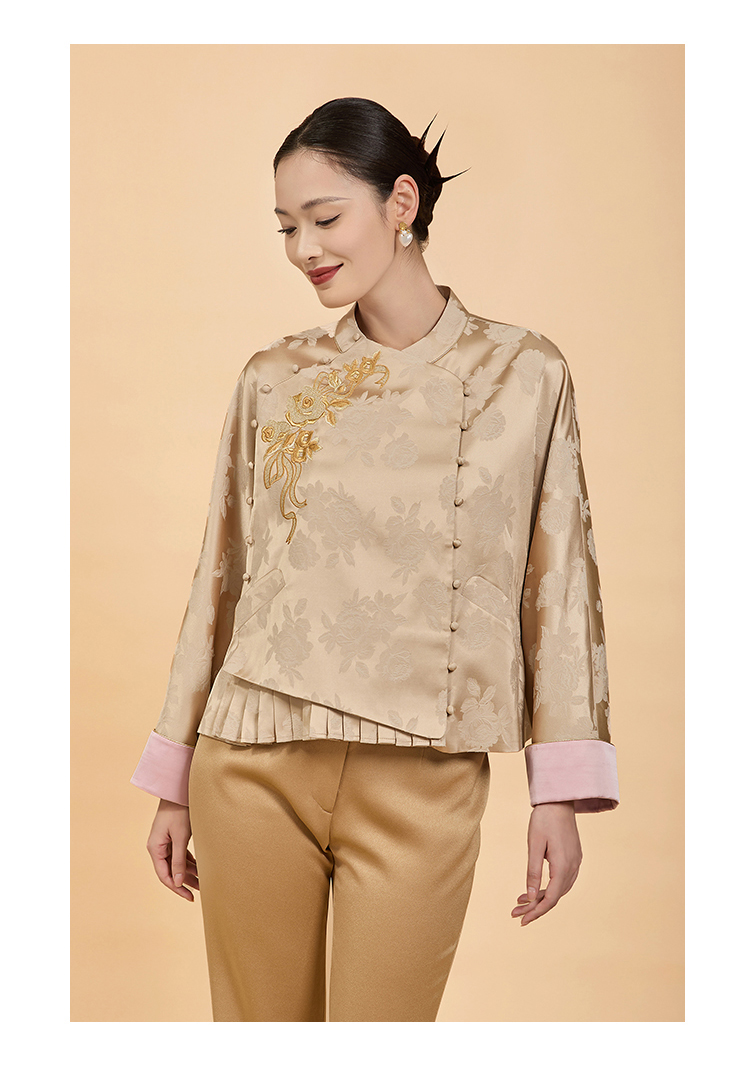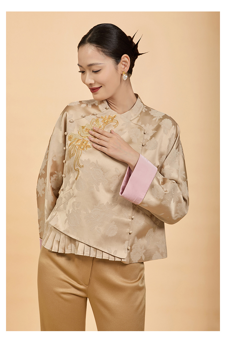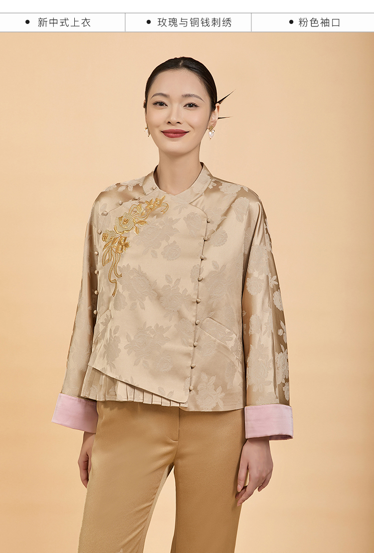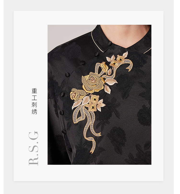 郭培成衣品牌精品系列飘带玫瑰刺绣中式上衣