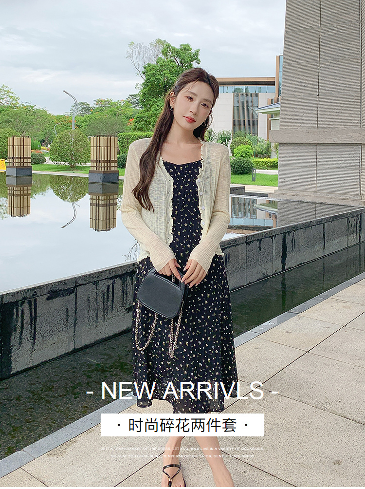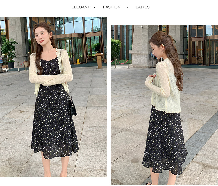 奢姿大码女装2025夏季V领减龄碎花吊带针织两件套胖妹妹时尚套装9952922015/上衣款9652622015