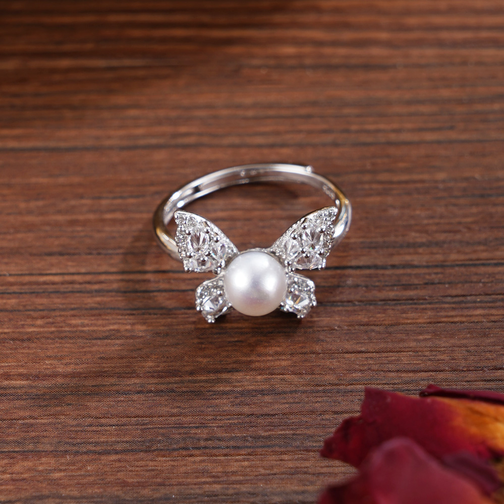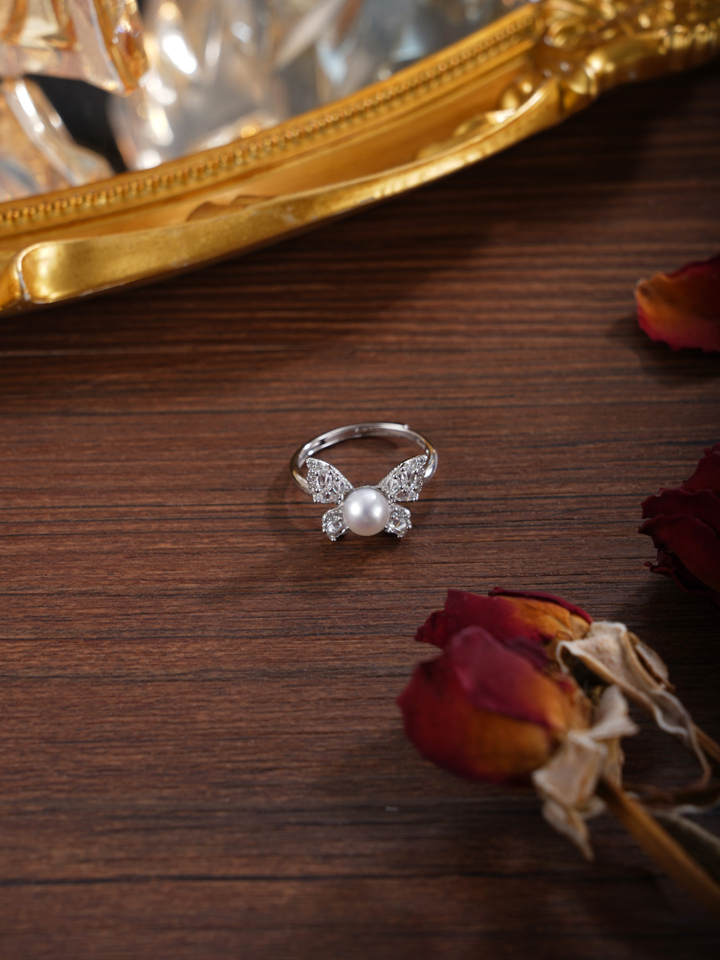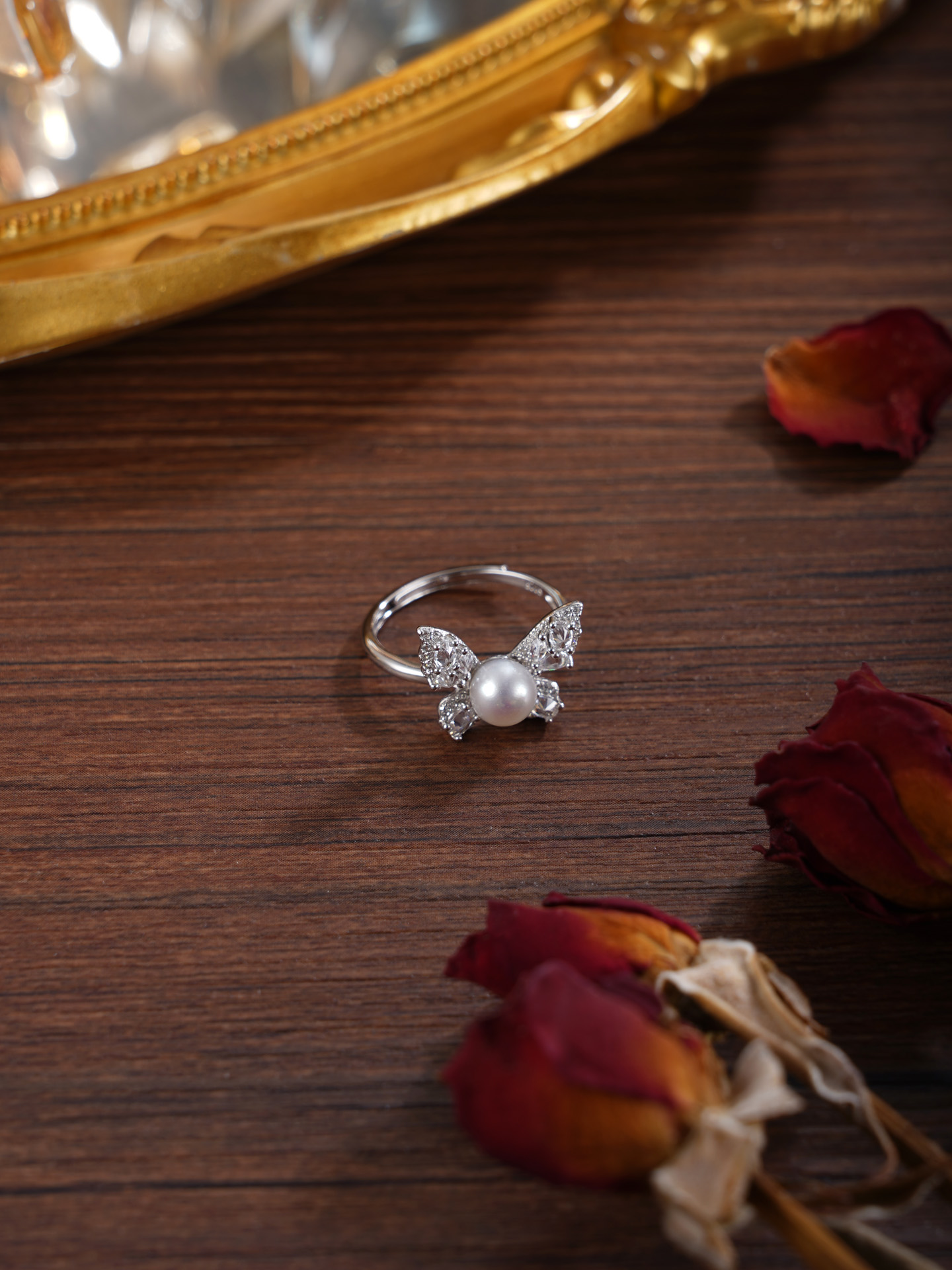 子佩集【绚烂重生】银S925珍珠惜王妃戒指【R2122】双色蝴蝶2602