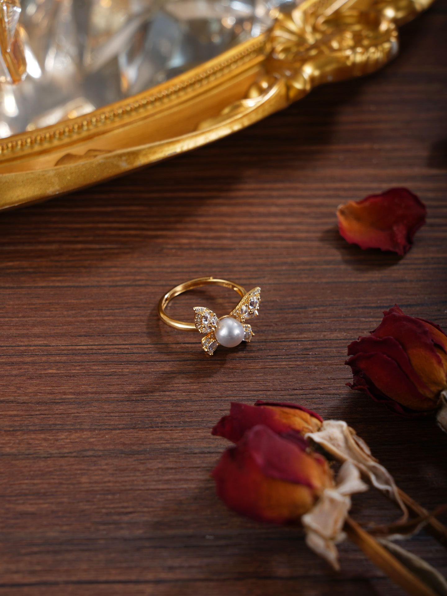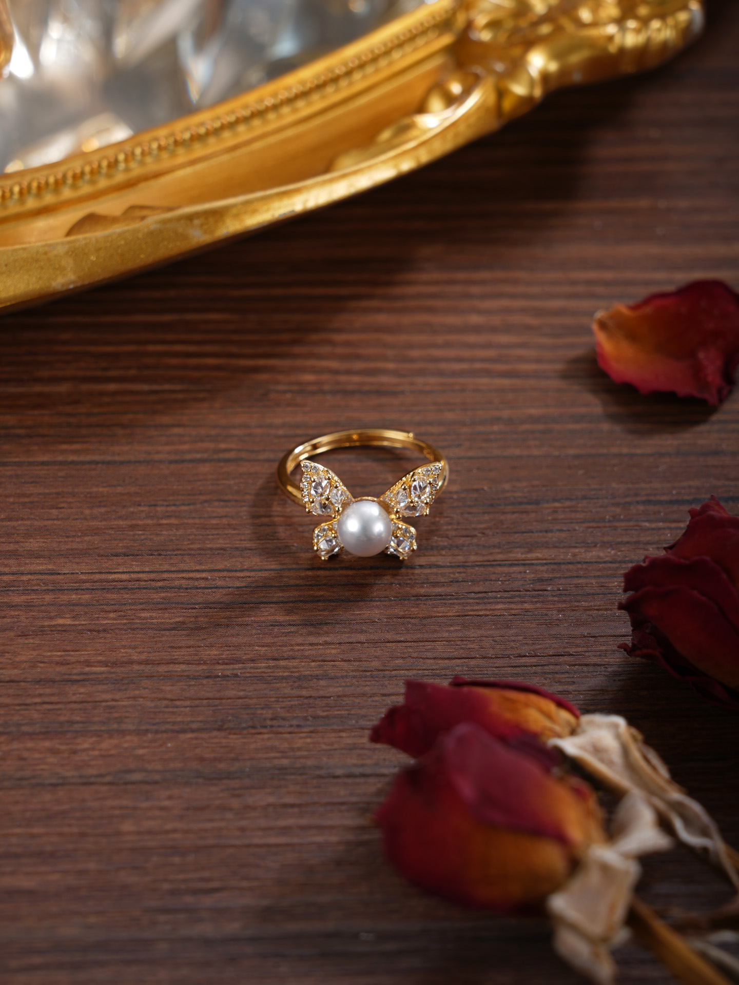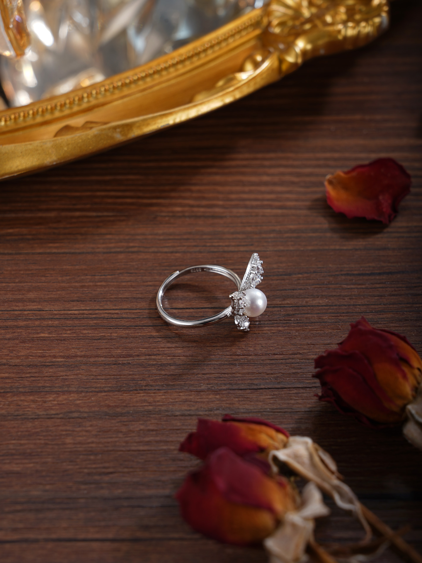 子佩集【绚烂重生】银S925珍珠惜王妃戒指【R2122】双色蝴蝶2602