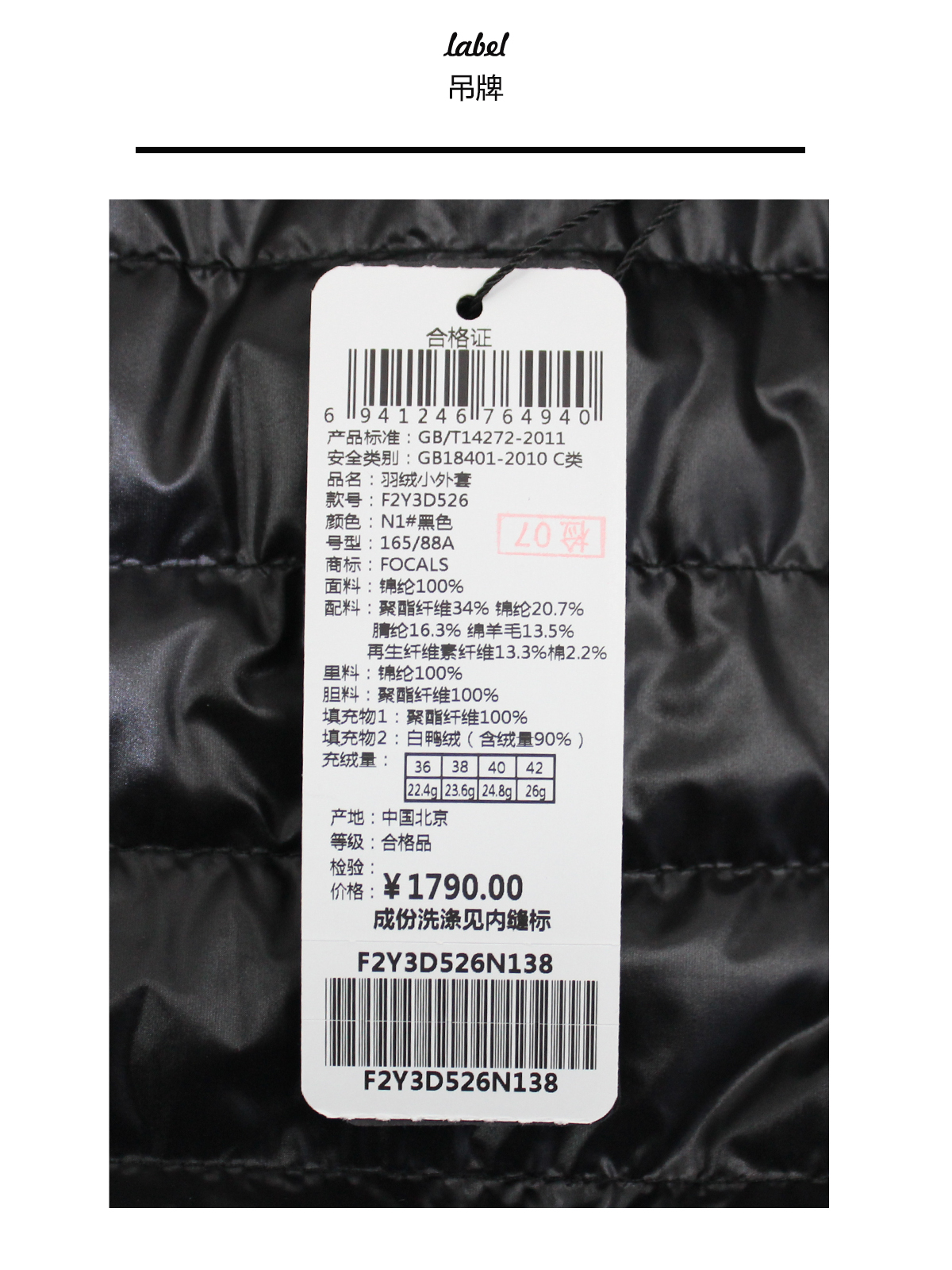 FOCALS福柯斯新款时尚休闲短款拼接薄羽绒服外套F2Y3D526N1