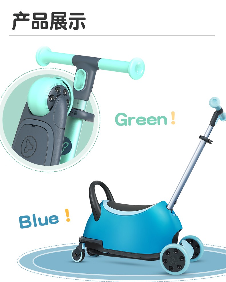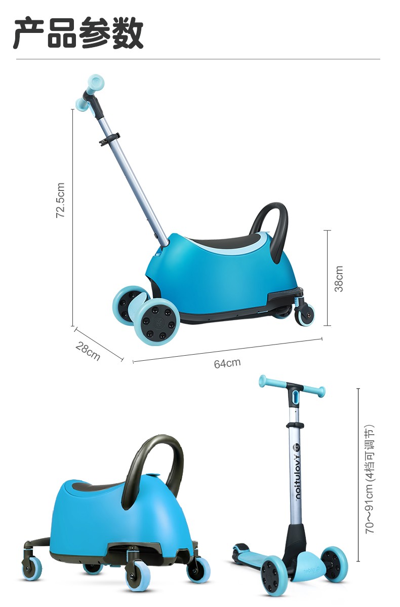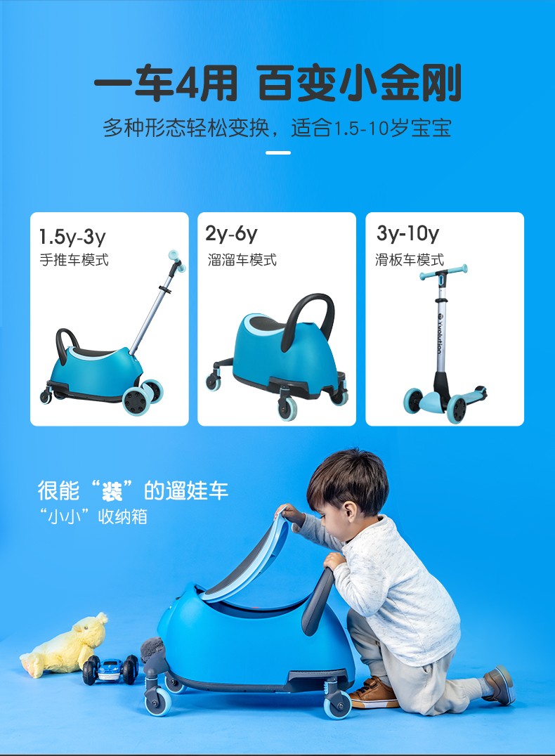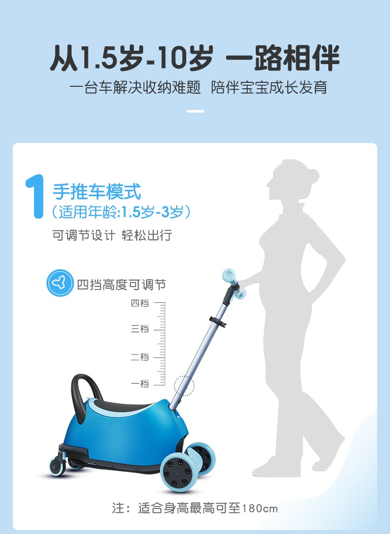 菲乐骑Luna多功能溜娃车手推车溜溜车滑板车收纳箱1.5-10岁4合1推车