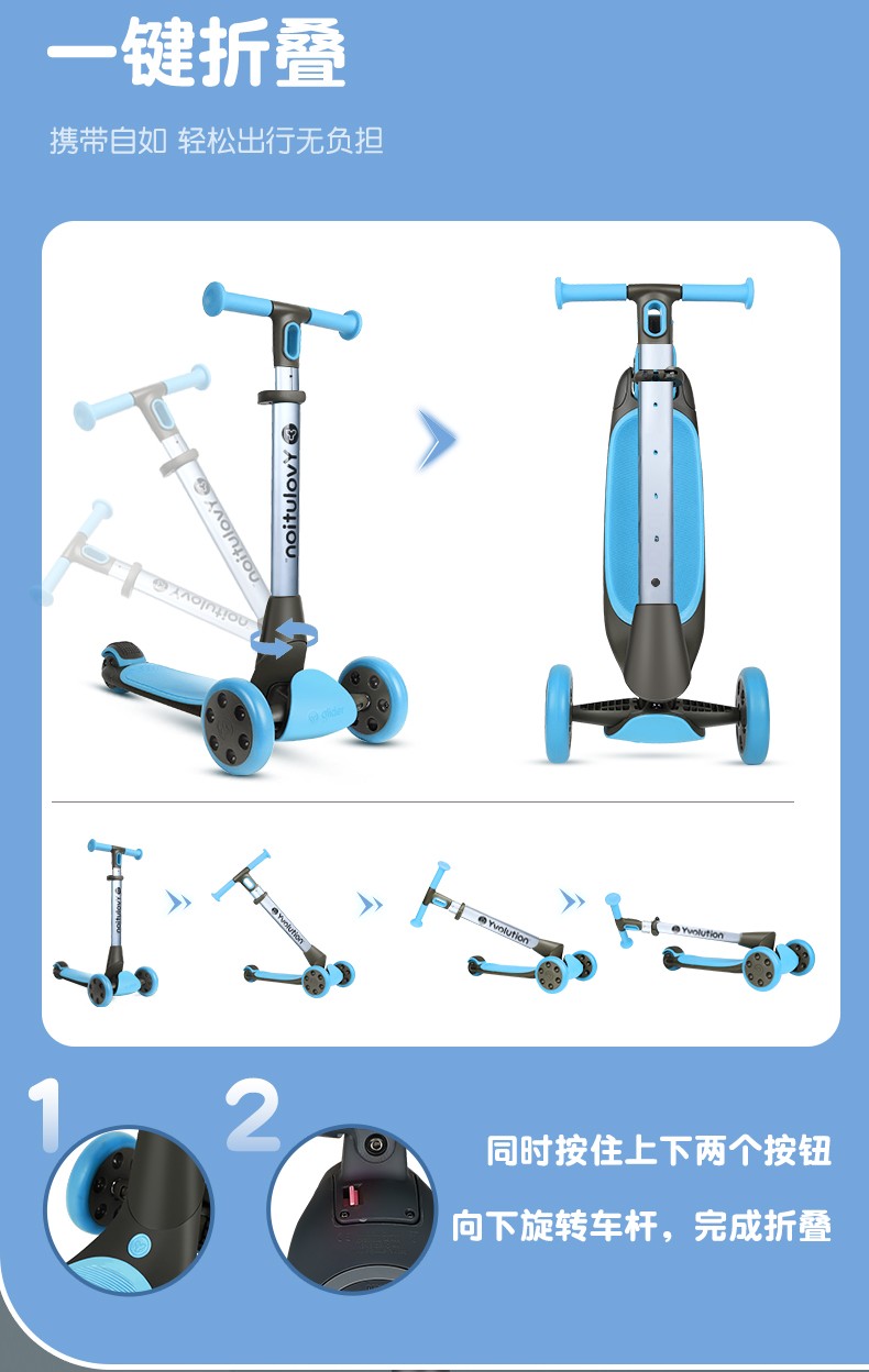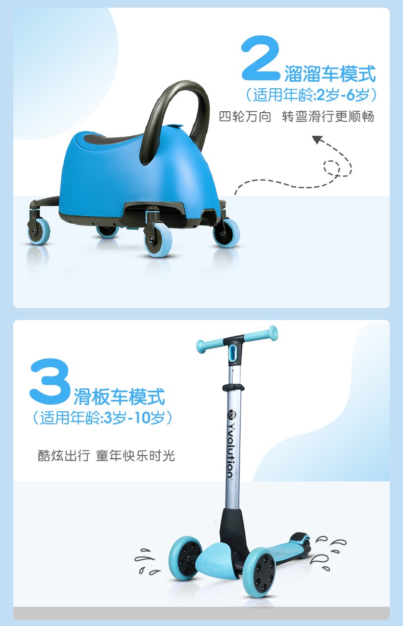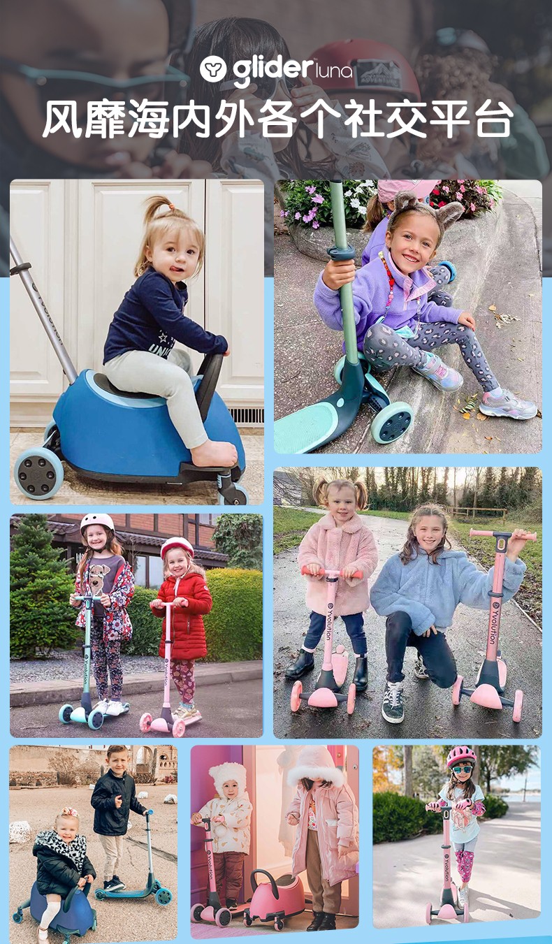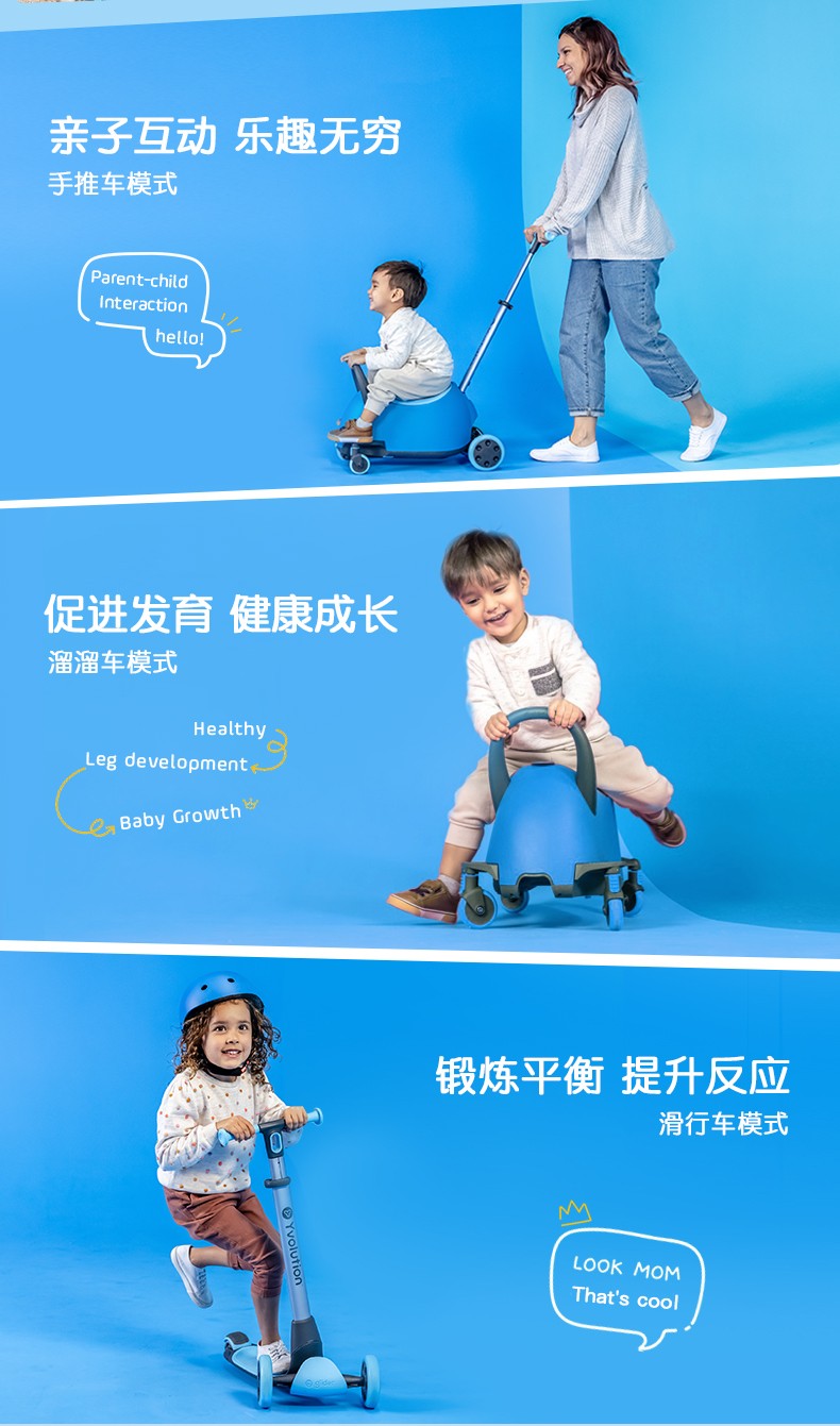 菲乐骑Luna多功能溜娃车手推车溜溜车滑板车收纳箱1.5-10岁4合1推车