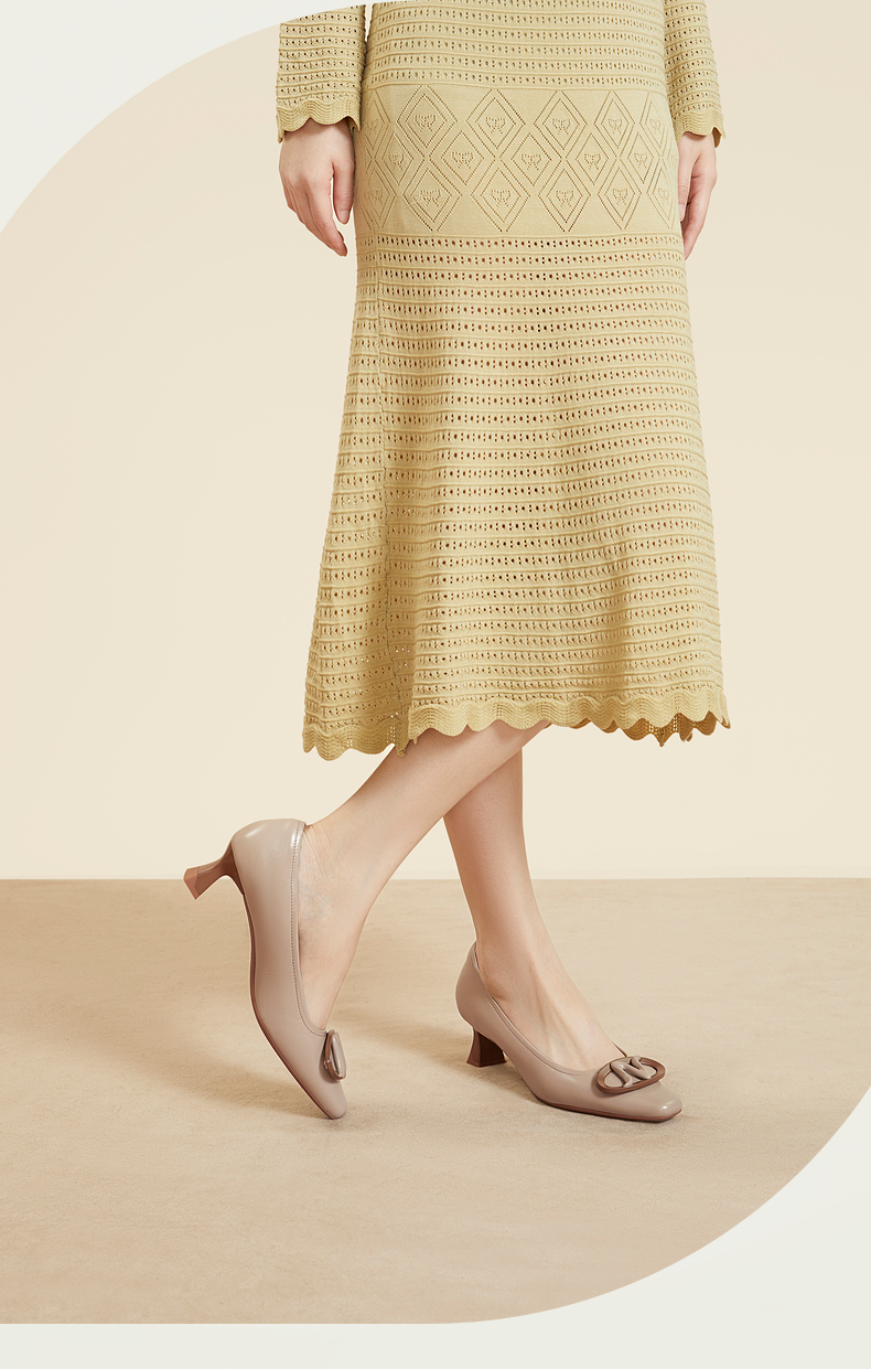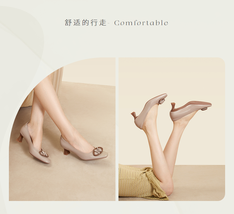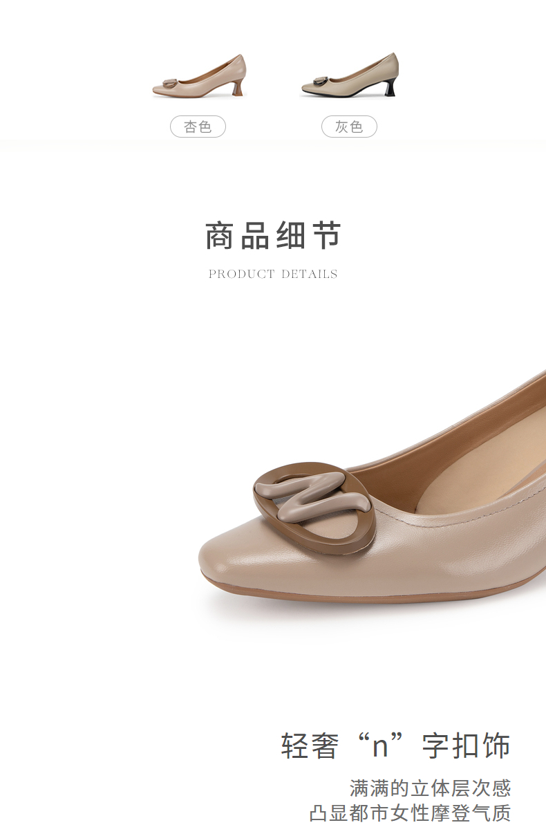 natursun法式气质单鞋女秋季不累脚上班通勤鞋方跟高跟鞋N24124310