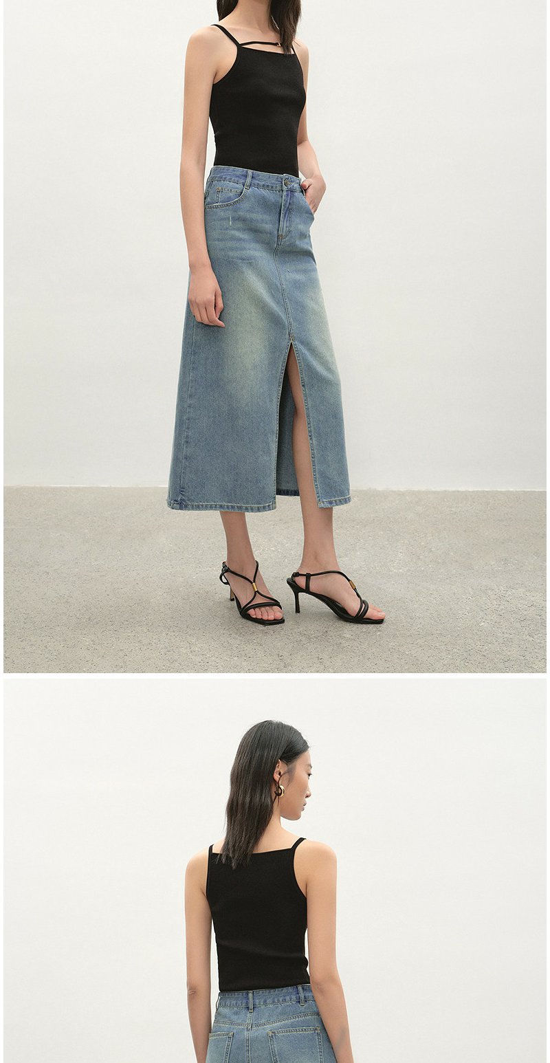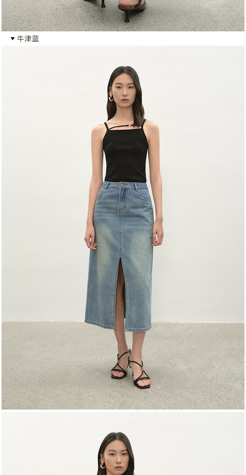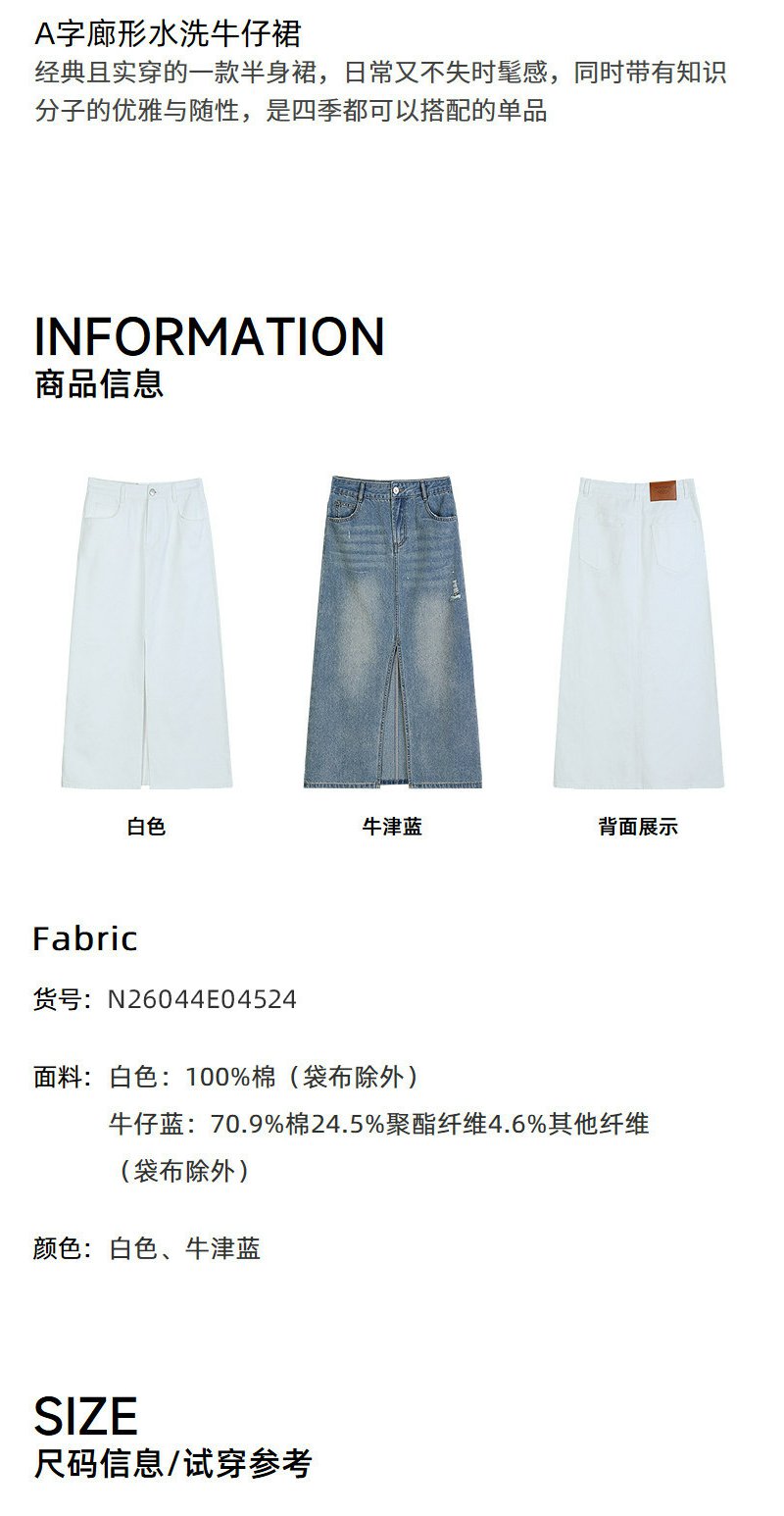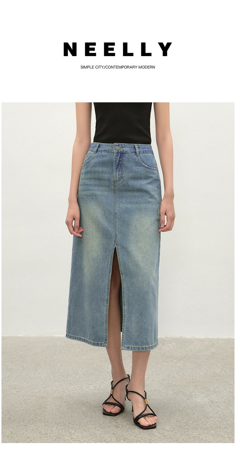 NEELLY纳俪商场同款夏季新款经典开叉牛仔半身裙女时尚水洗A字裙N26044E04524