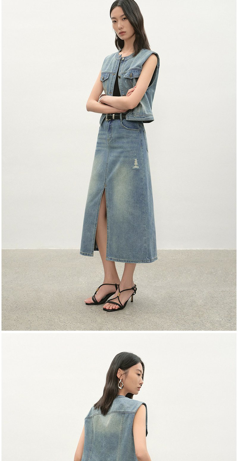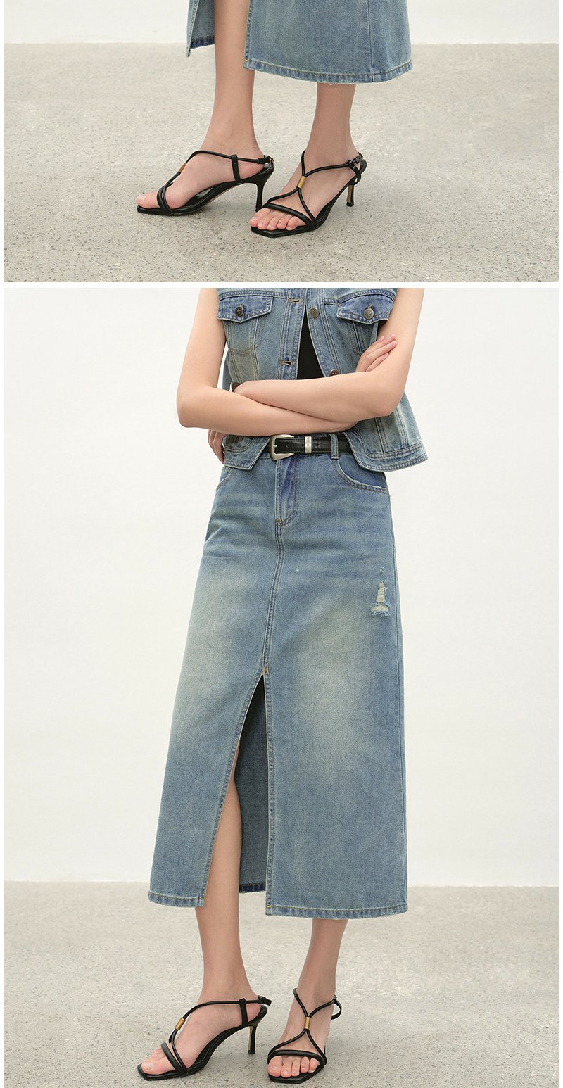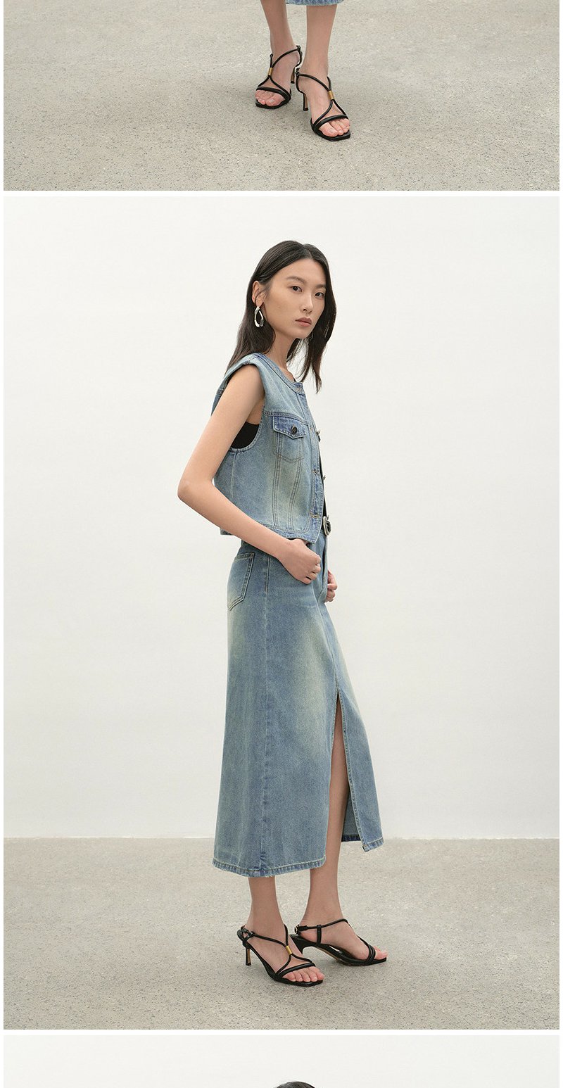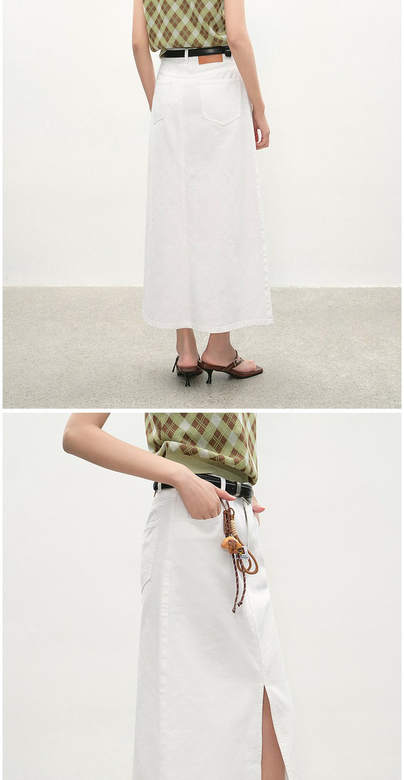 NEELLY纳俪商场同款夏季新款经典开叉牛仔半身裙女时尚水洗A字裙N26044E04524