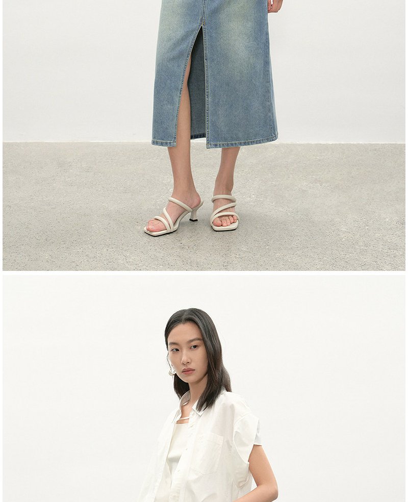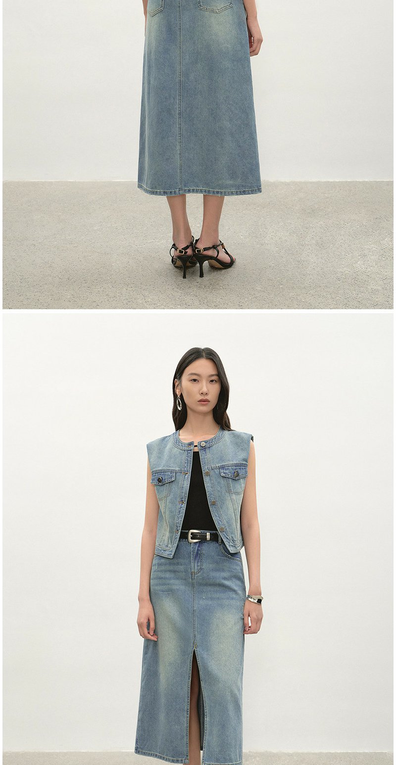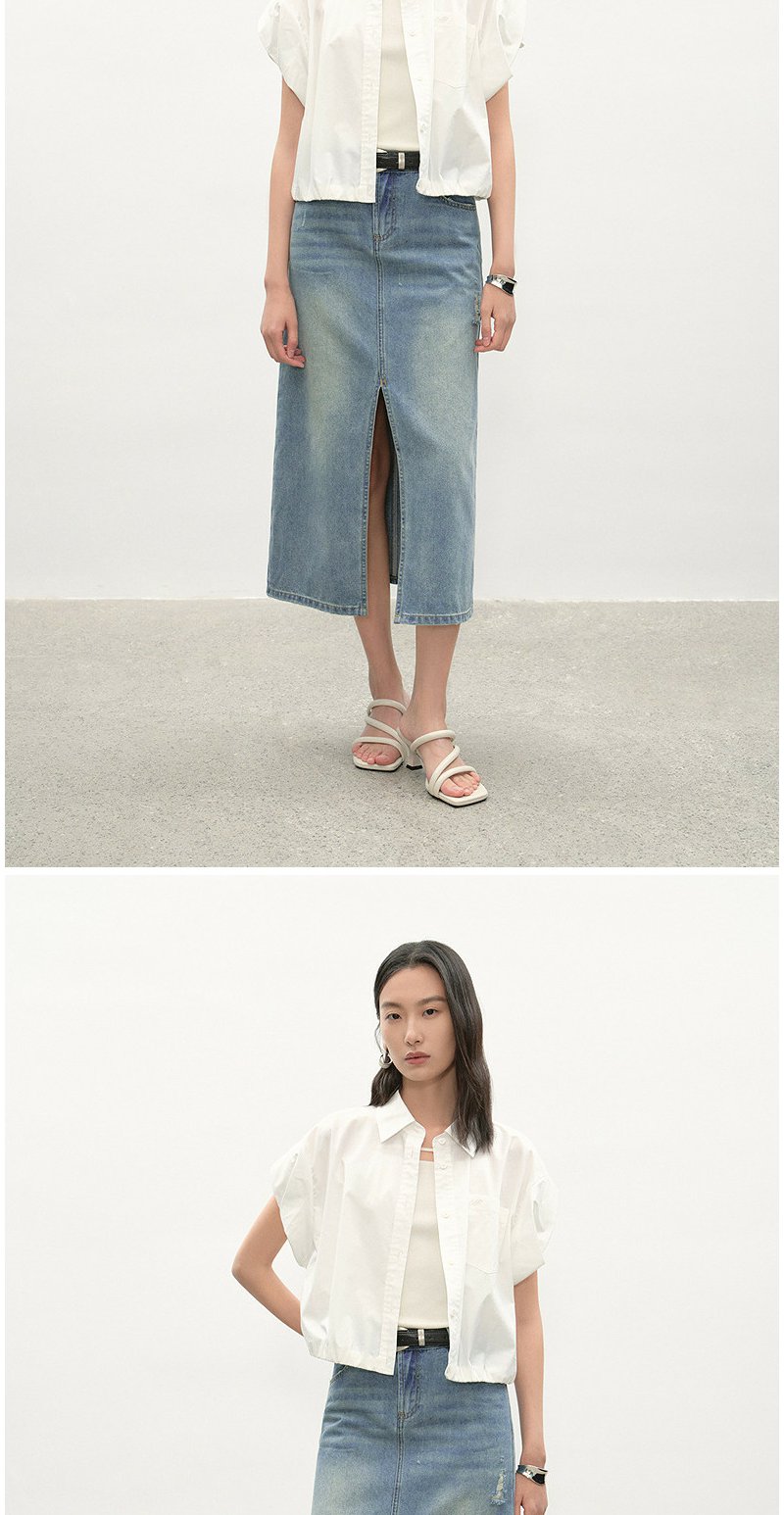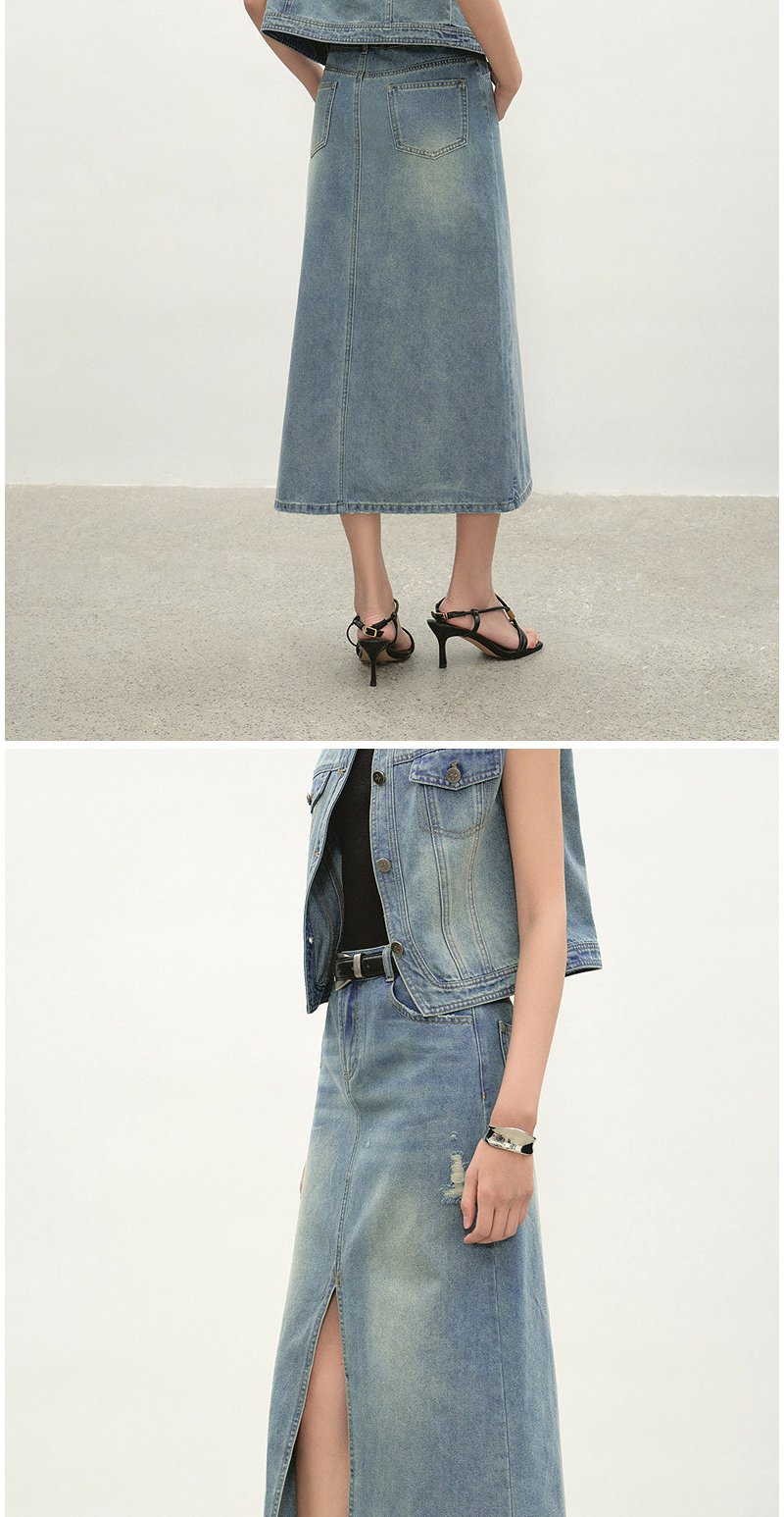 NEELLY纳俪商场同款夏季新款经典开叉牛仔半身裙女时尚水洗A字裙N26044E04524