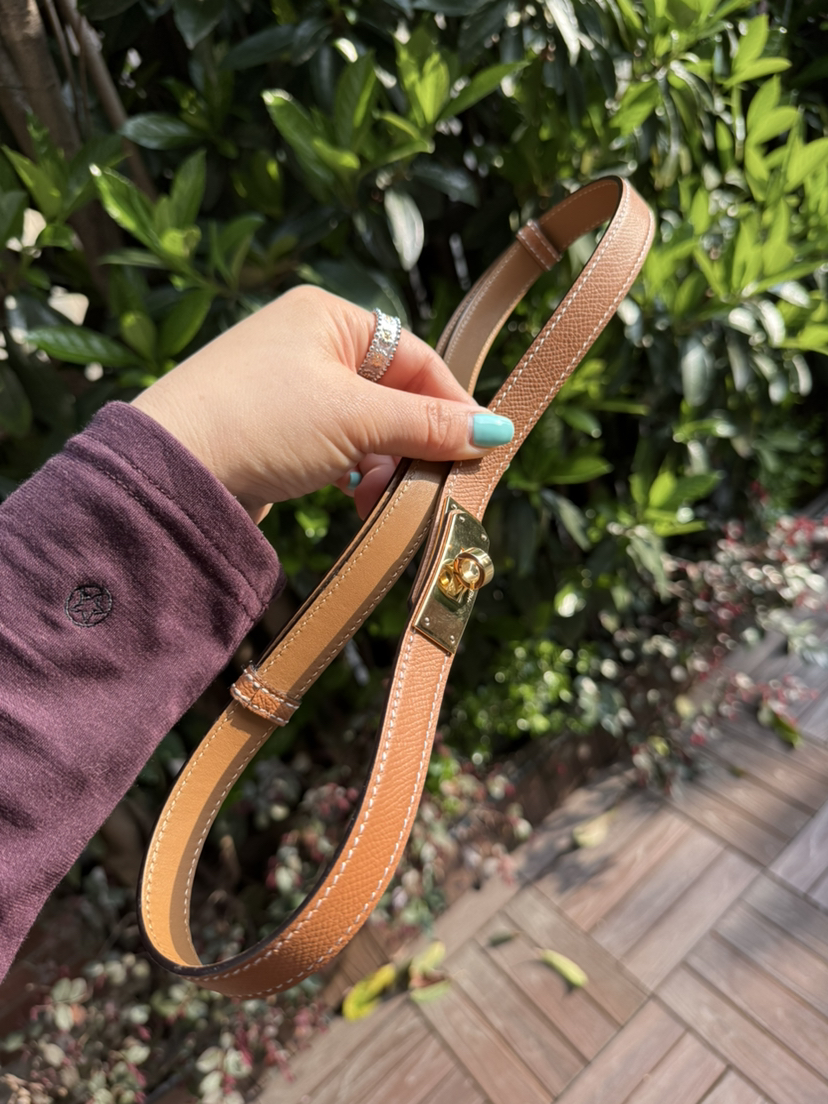 姑娘们记惦很久的大马kelly腰带来来了了,18mm的宽度,搭配连裙衣,牛仔,裤西裤,都是错不的,原版Espom手掌纹牛皮,半工手针车,纯手水工性油边,典经的kelly旋扣计设,加上可以意随调节的短长,不管腰高连衣裙,低腰牛仔,裤都是很好的配搭。