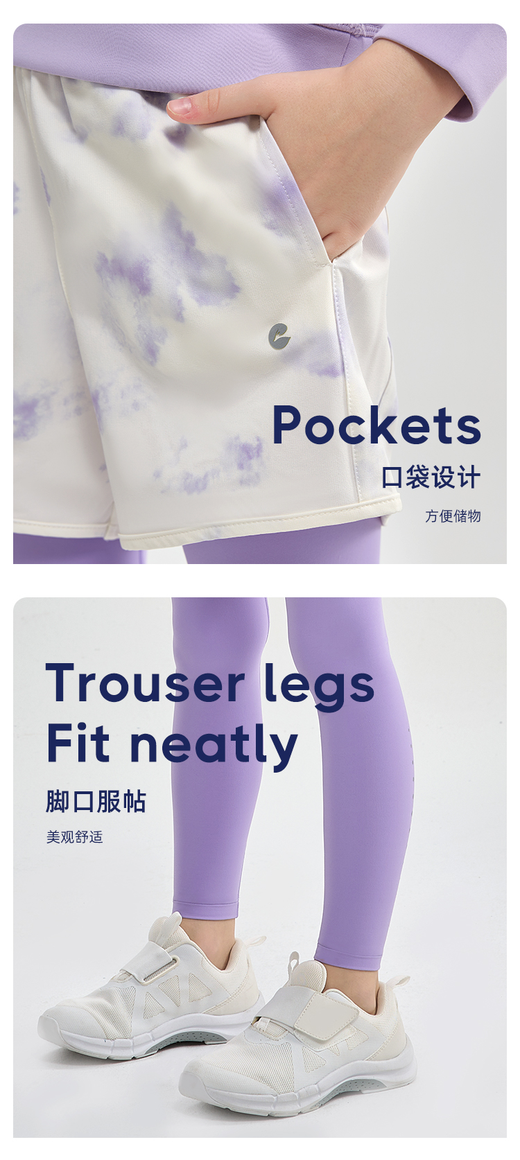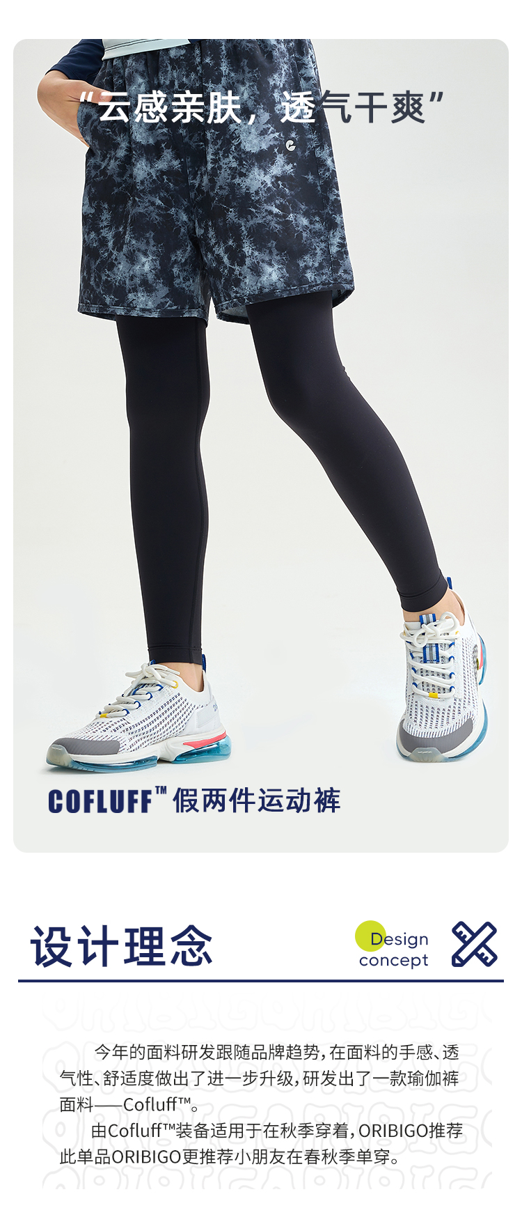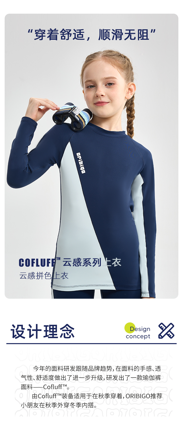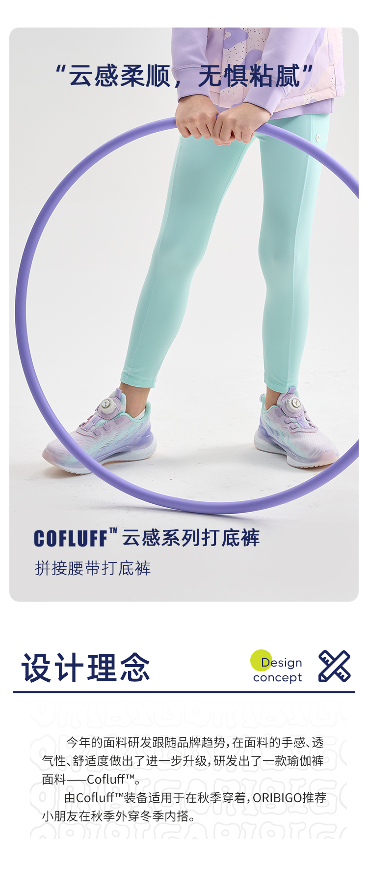 (袋鼠爸爸)oribigo儿童云感拼色上衣/拼接腰带打底裤/假两件运动裤