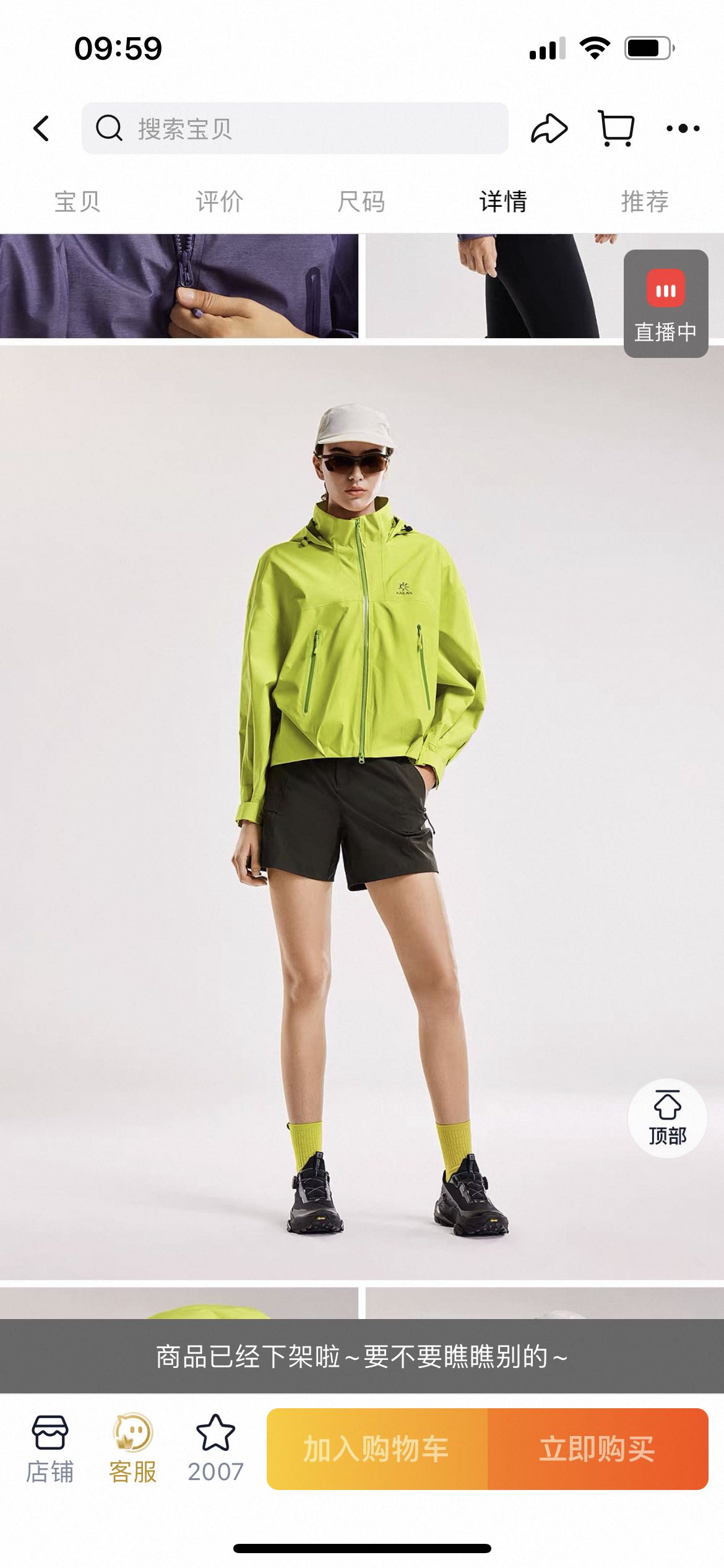 凯乐石KLS冲锋衣防风防水透汽短款户外运动登山徒步夹克外套女