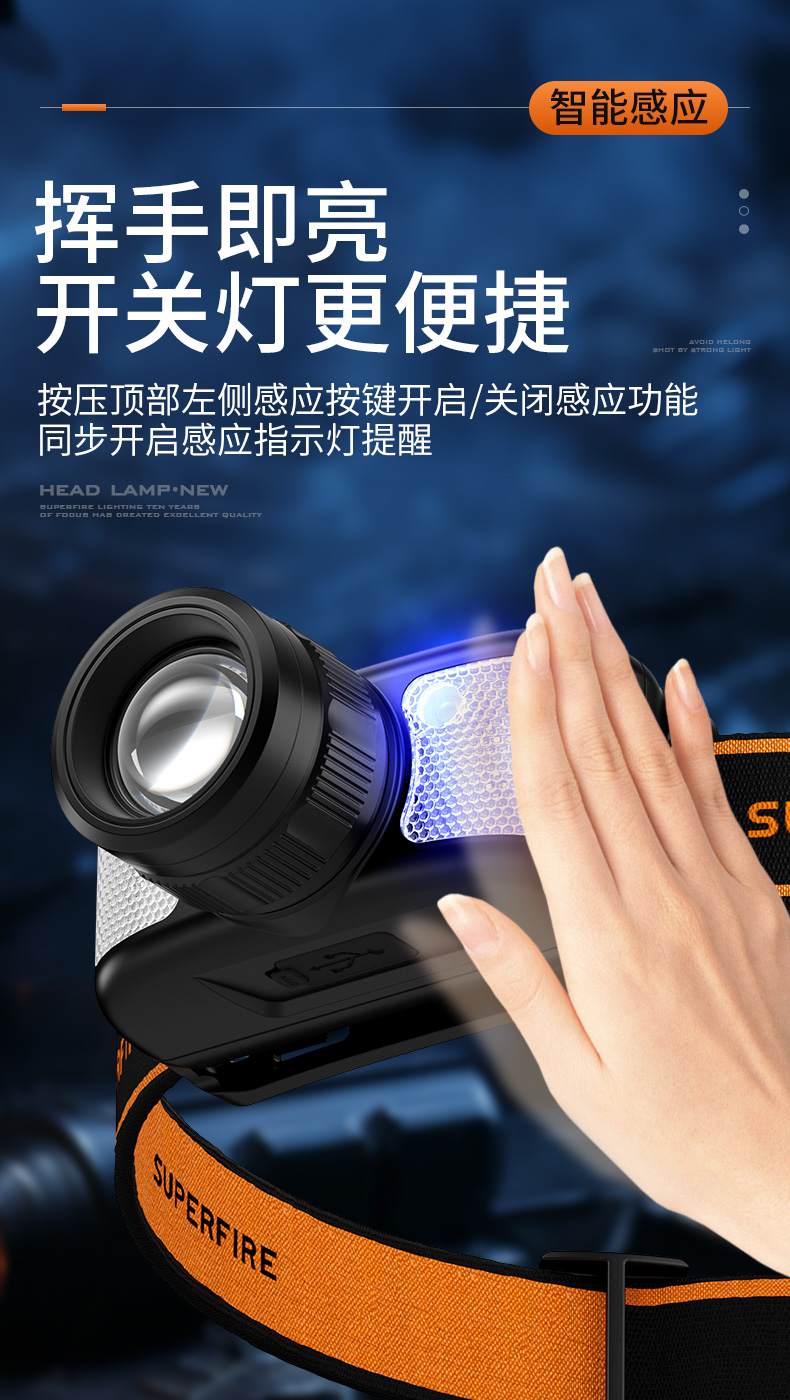 神火HL91强光头灯充电高亮防水头戴式感应户外照明装备