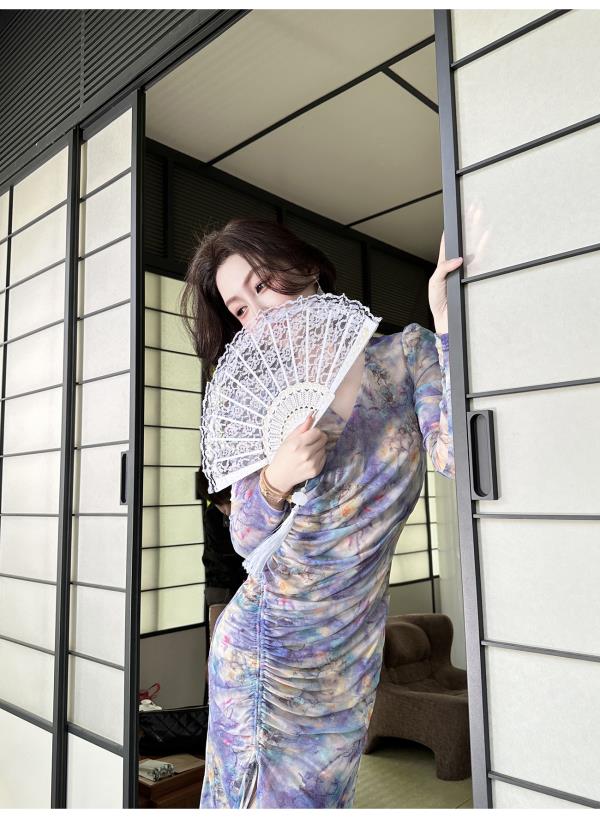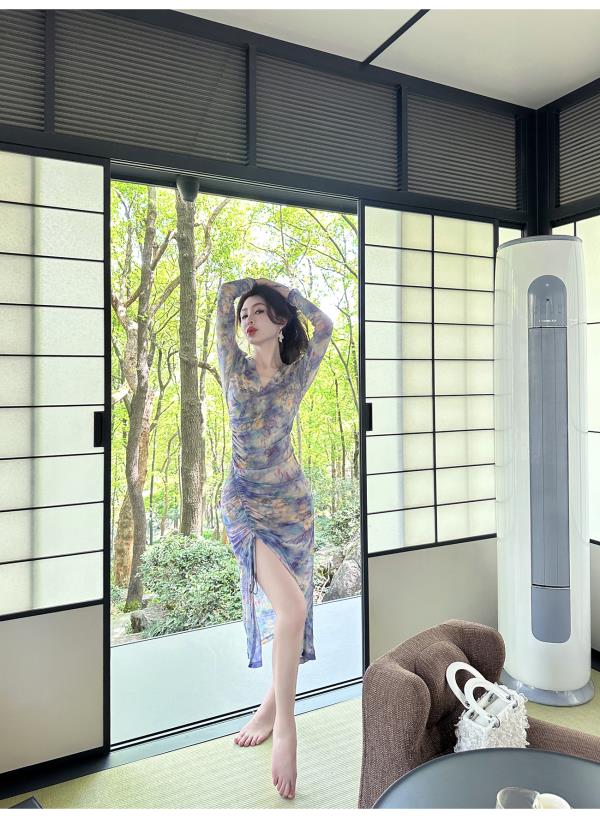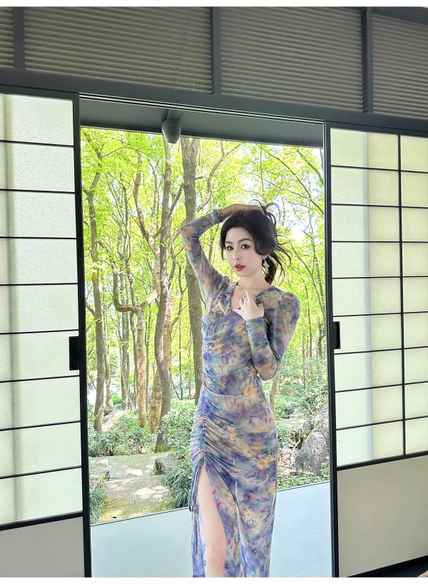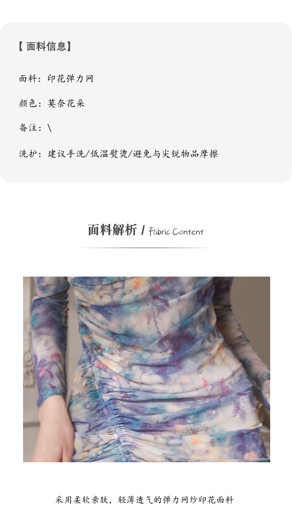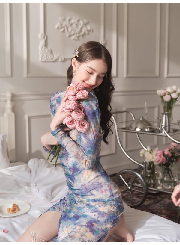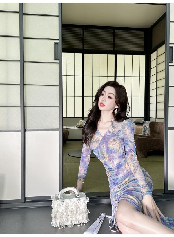 BeQueenStory【莫奈花房】高端上档次甜美花色v领连衣裙2023春季新款女