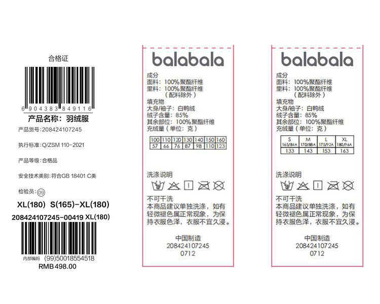 【品牌优选】巴拉巴拉儿童羽绒服男童宝宝童装女童冬季中大童立领保暖洋气外套