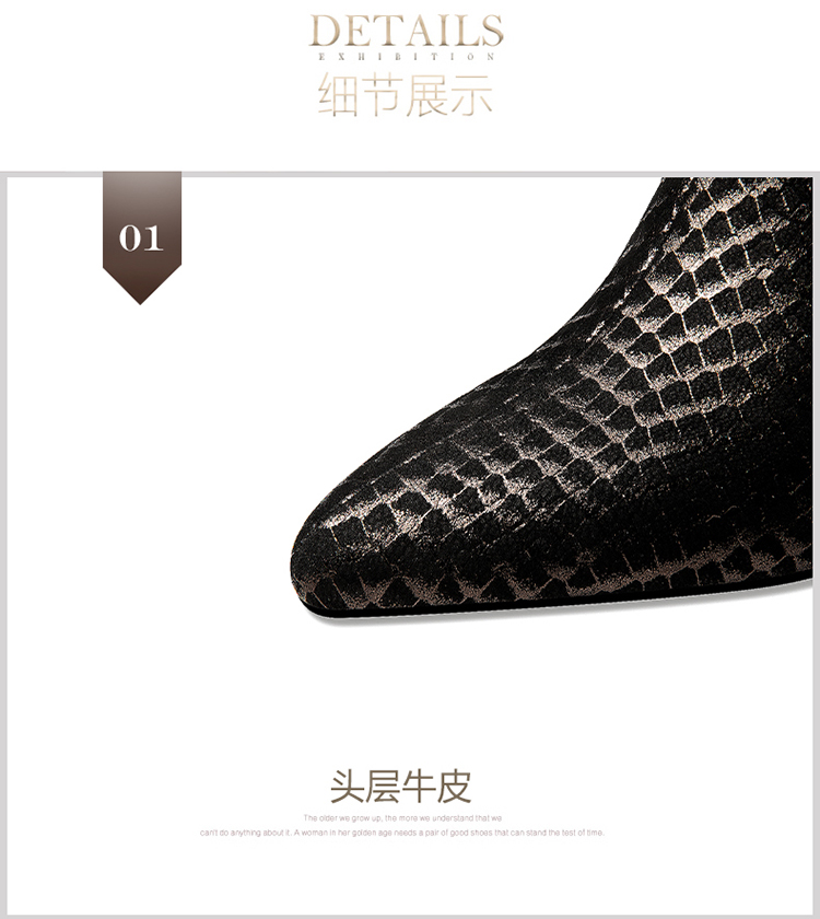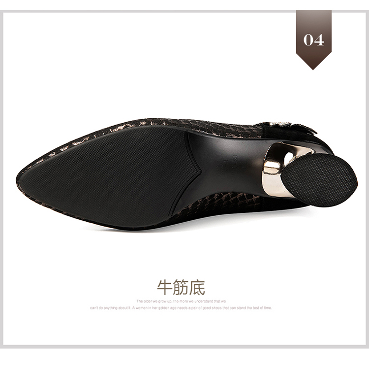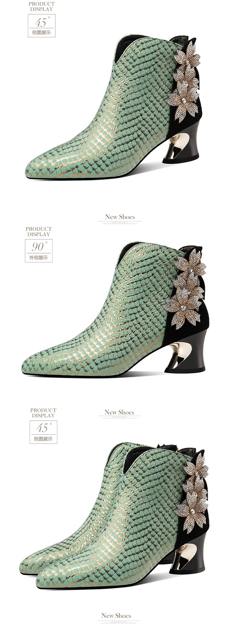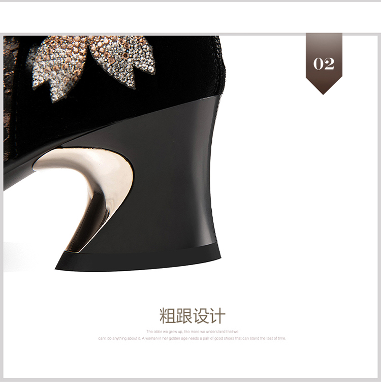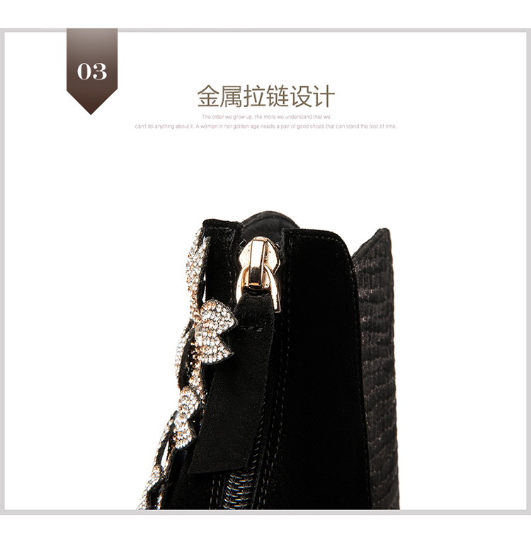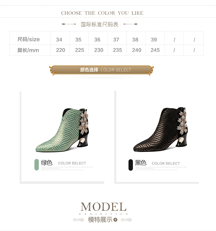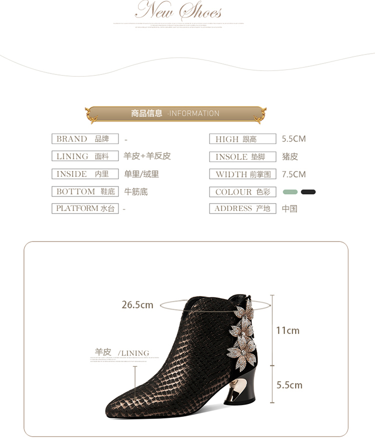 优雅百搭,真皮拼接花朵镶钻高跟短靴JZJ-B234-665