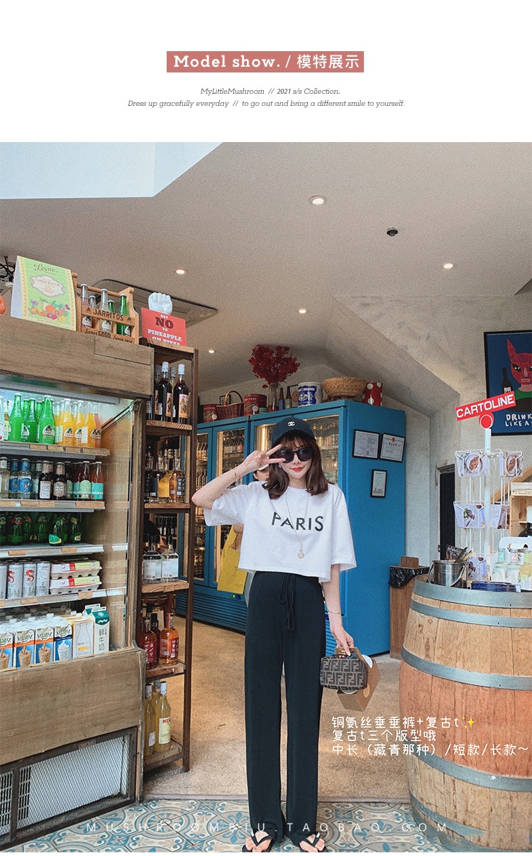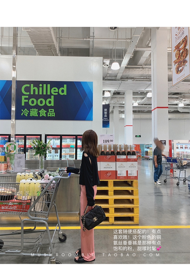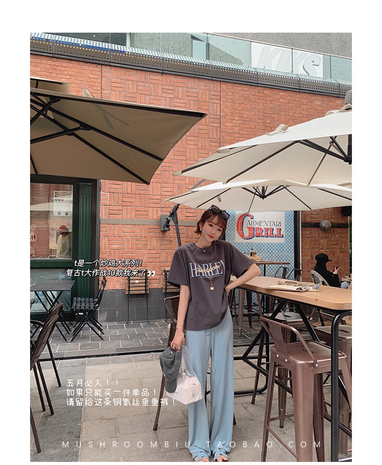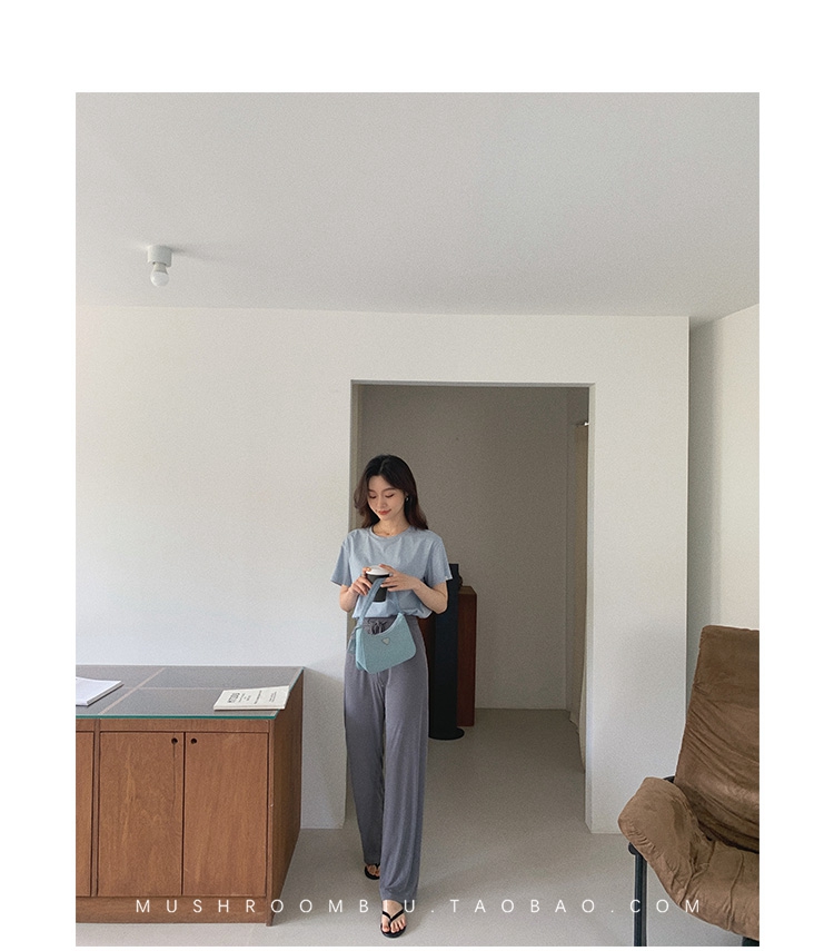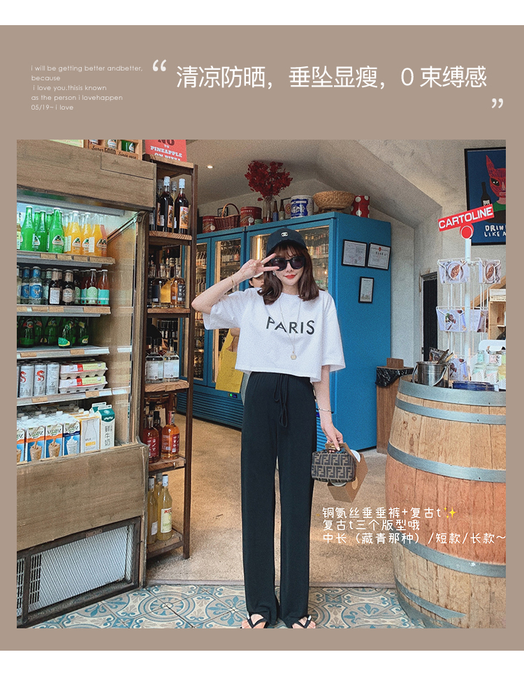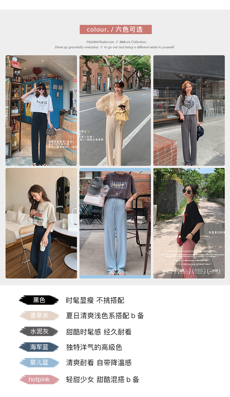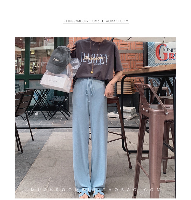 不退不换 介意慎拍!婴儿蓝S【金蘑菇菇 铜氨丝垂垂裤】高腰垂感宽松薄款拖地休闲长裤显腿长