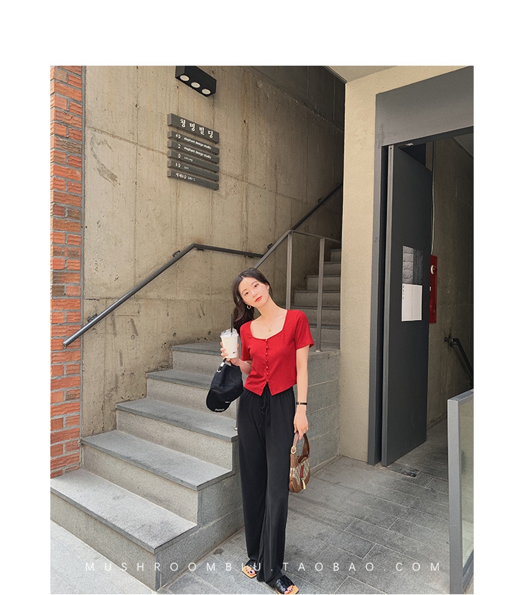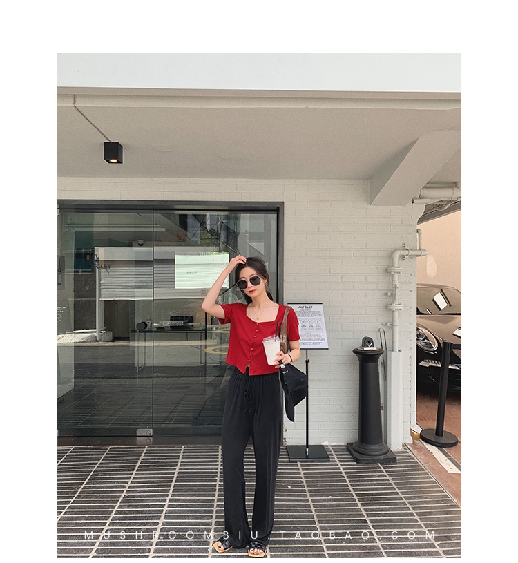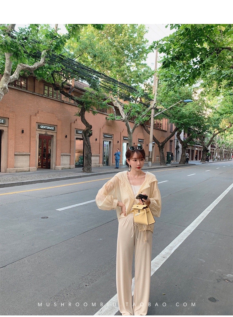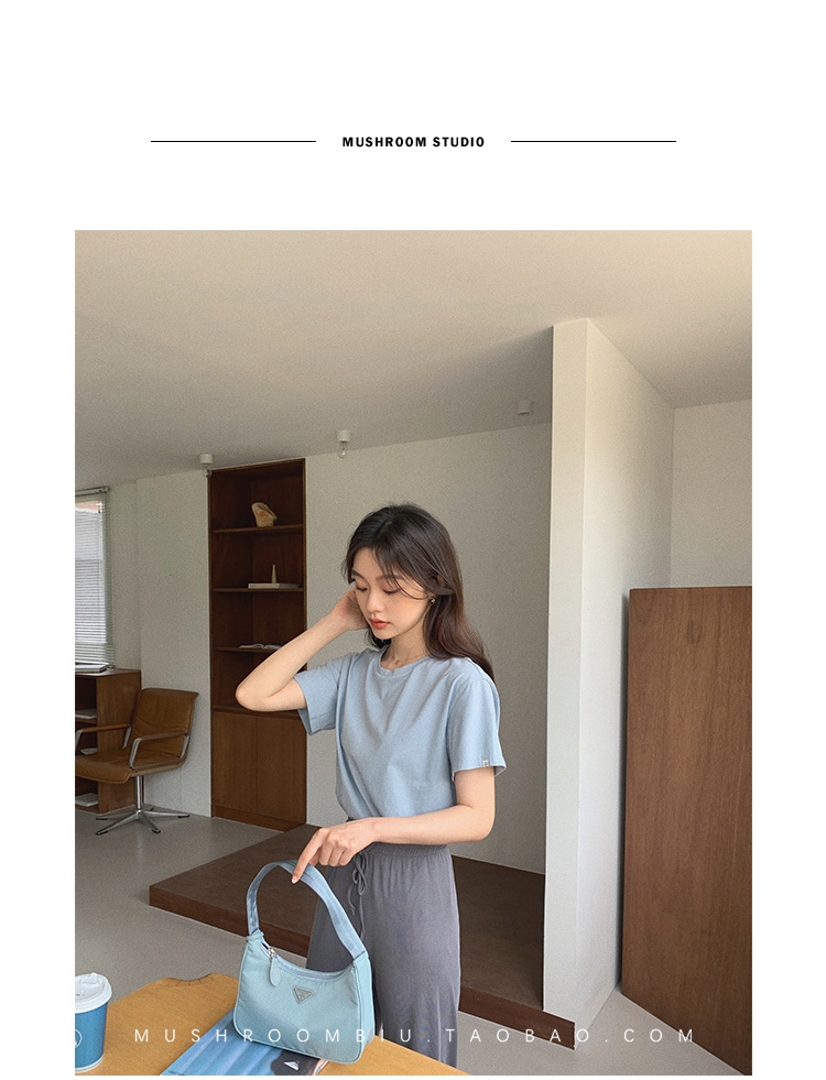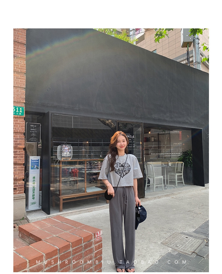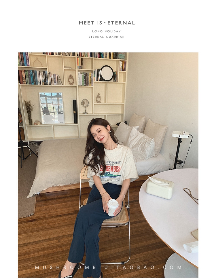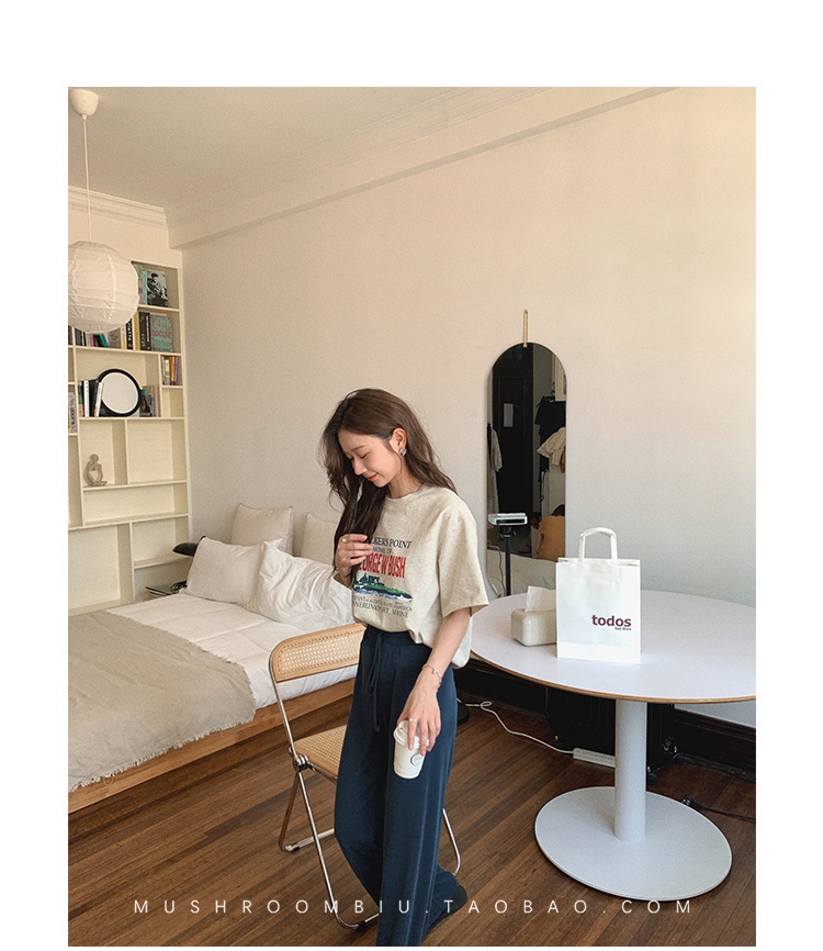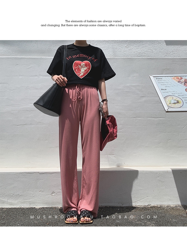 不退不换 介意慎拍!婴儿蓝S【金蘑菇菇 铜氨丝垂垂裤】高腰垂感宽松薄款拖地休闲长裤显腿长