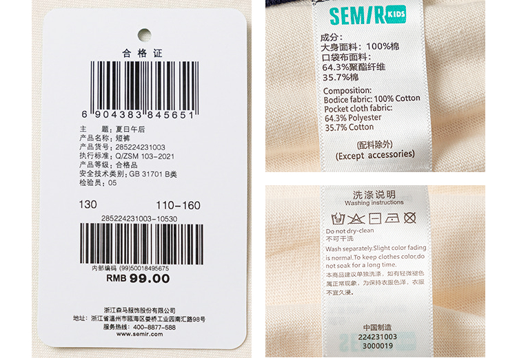 (79元2件)森马儿童短裤年新款运动风时尚撞色印花针织休闲裤夏女童裤子
