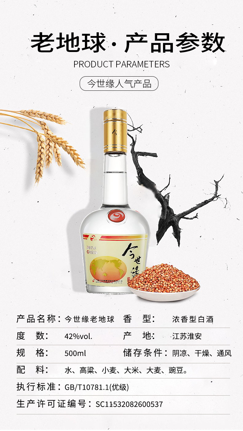 【酒厂直营】今世缘浓香型白酒老地球(整箱)42度500ml*6 今世缘官方旗舰店