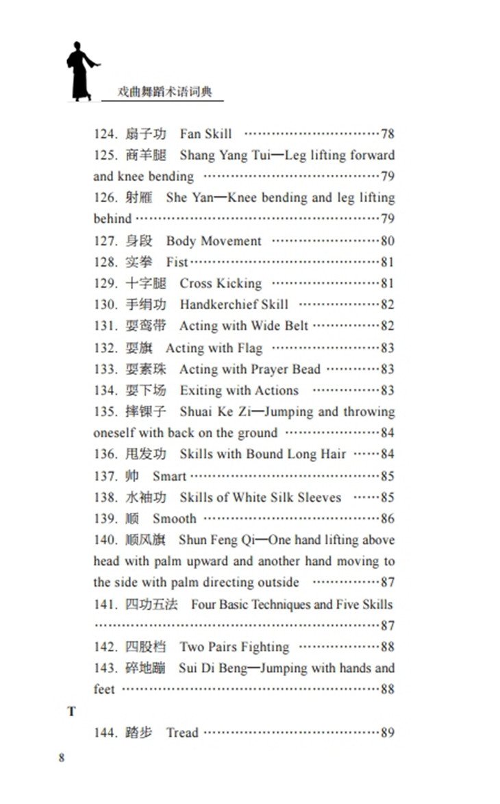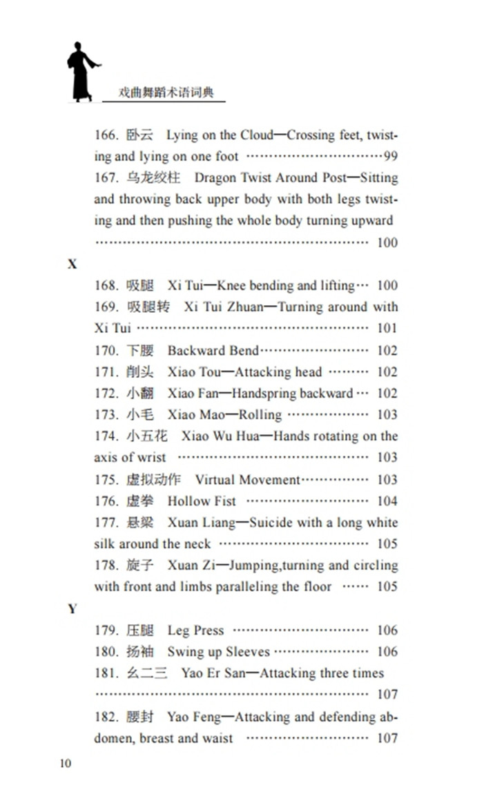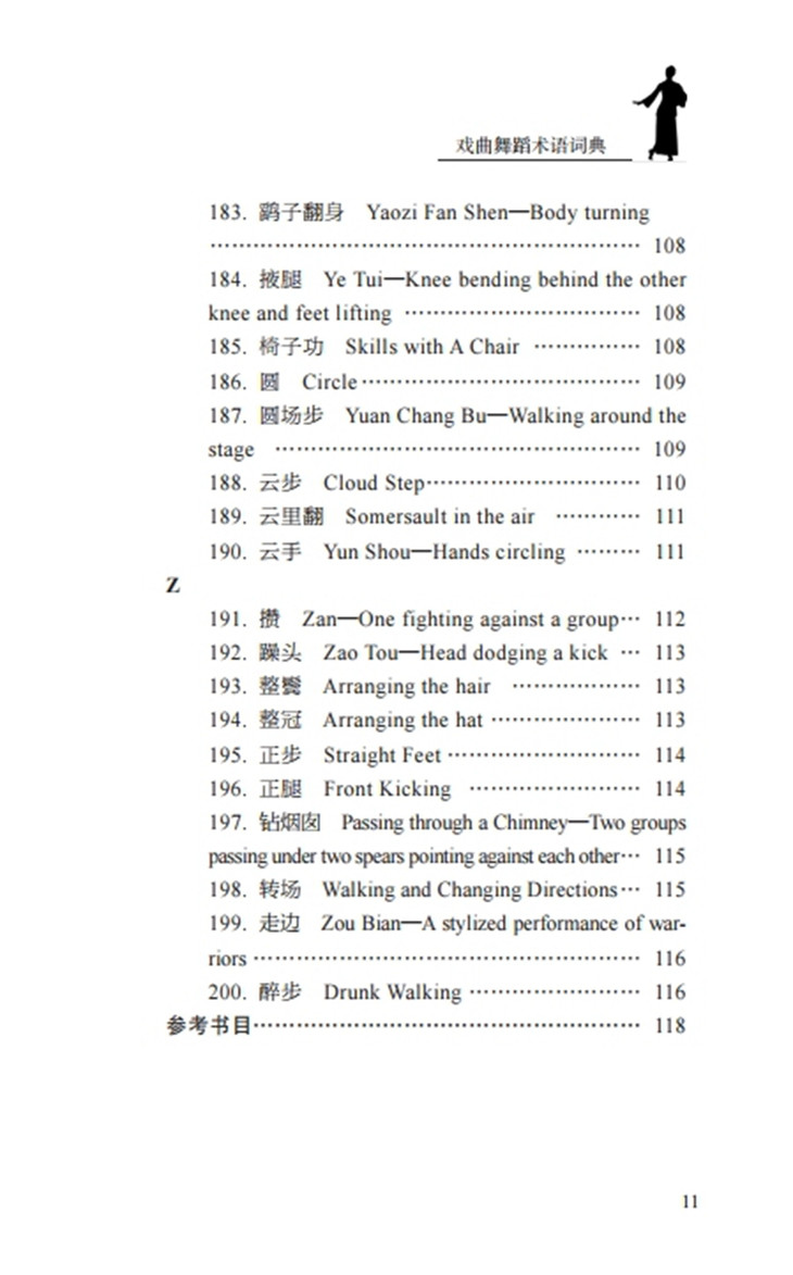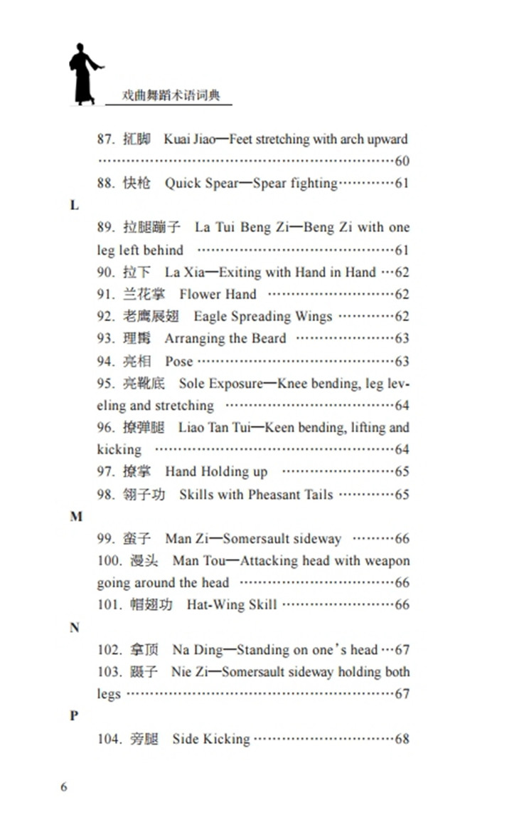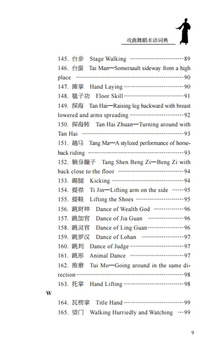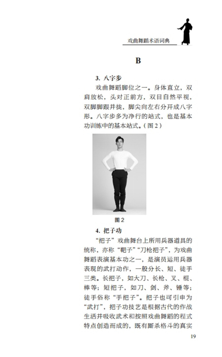 《戏曲舞蹈术语词典》一书整理了戏曲舞蹈术语200条,具体涉及手势、脚姿、站姿、步伐、舞台调度、武打套路、各种毯子功、把子功、程式化表演等,书中所收录的术语详尽,内容表述规范明了。全书按照首字母的顺序进行排序,结构条理清晰,是一本具有实用价值的舞蹈工具书,也是一本填补戏曲舞蹈术语领域空白的理论专业书。