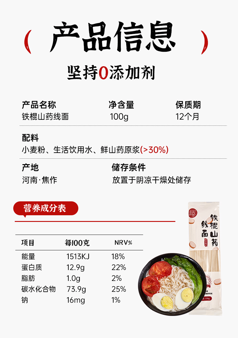 【铁棍山药线面】| 元和优选 正宗焦作温县铁棍山药低纳细细线面100g/袋