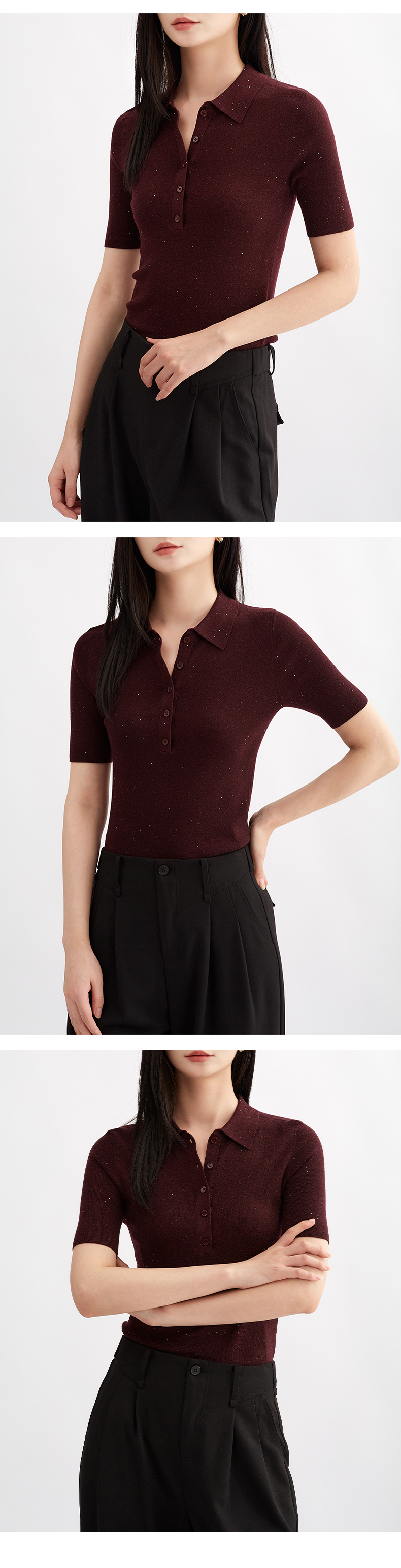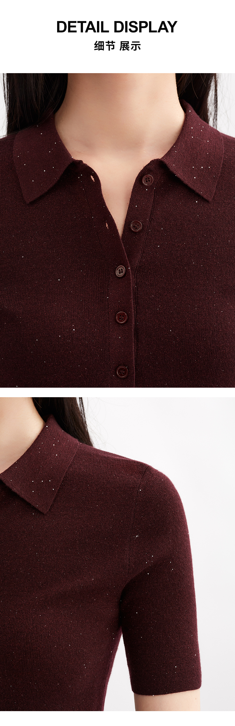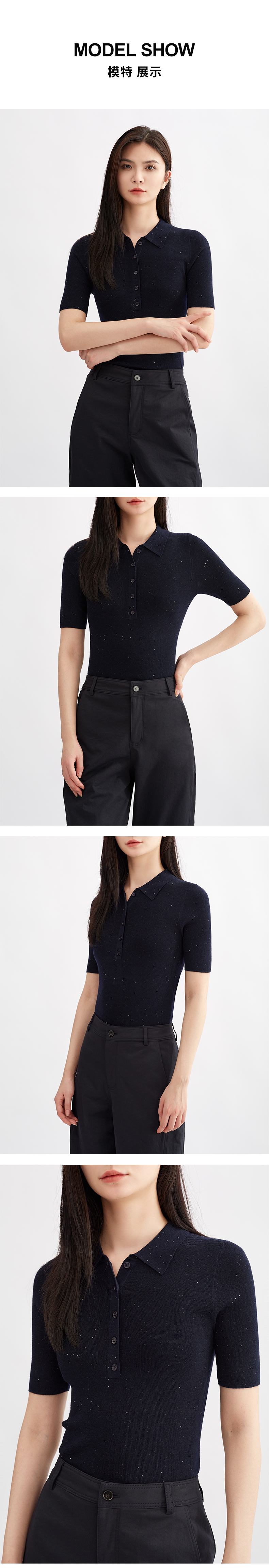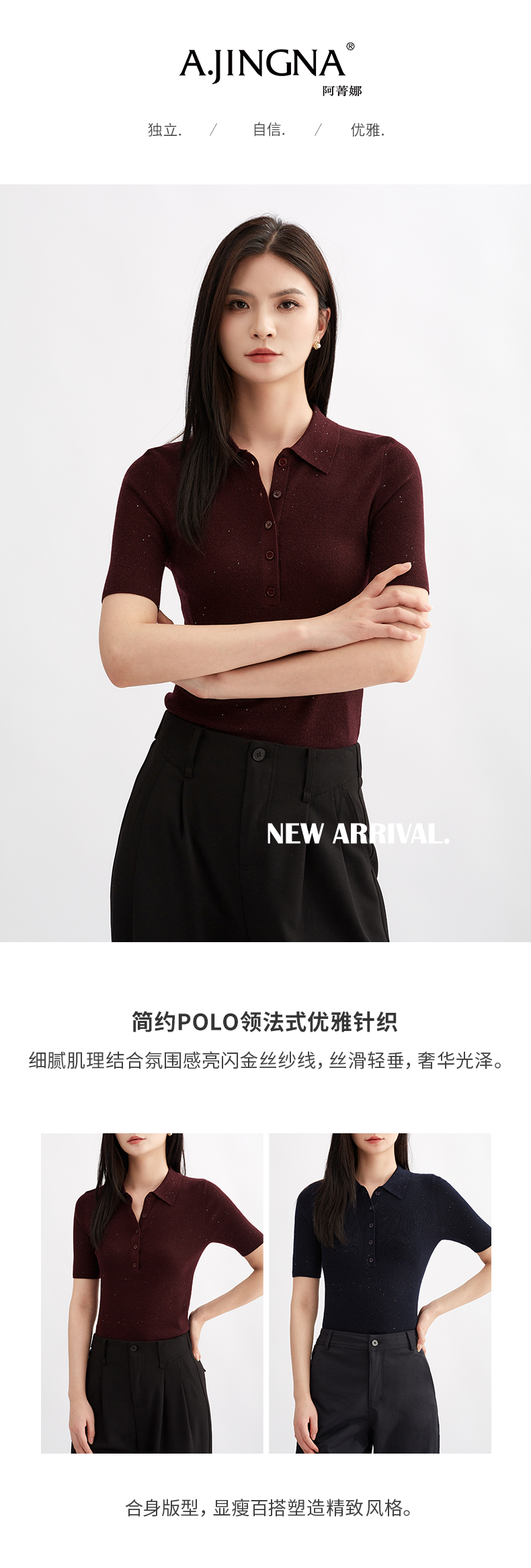 【亮闪金丝】阿菁娜简约POLO领法式优雅气质针织衫F30Q302038