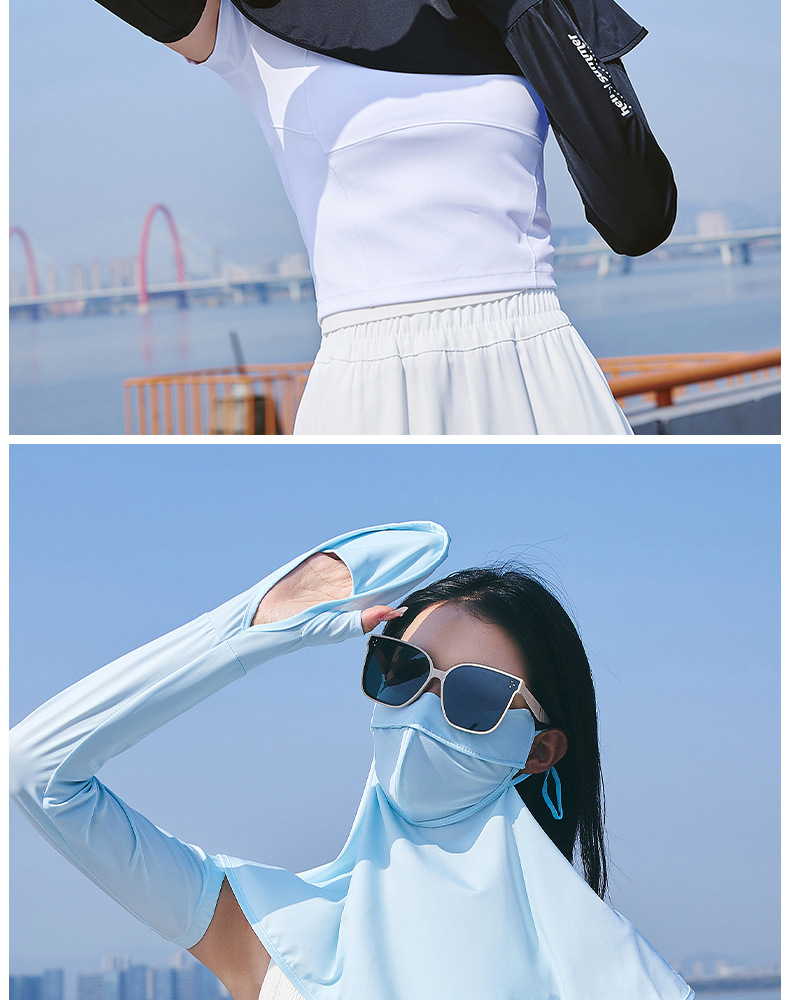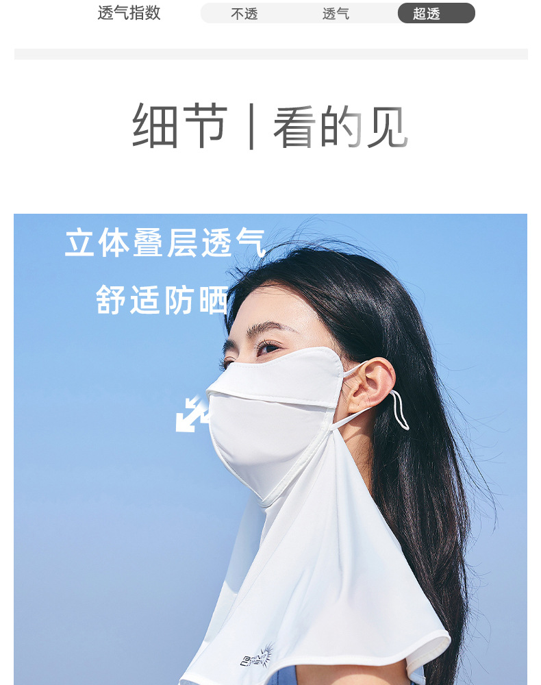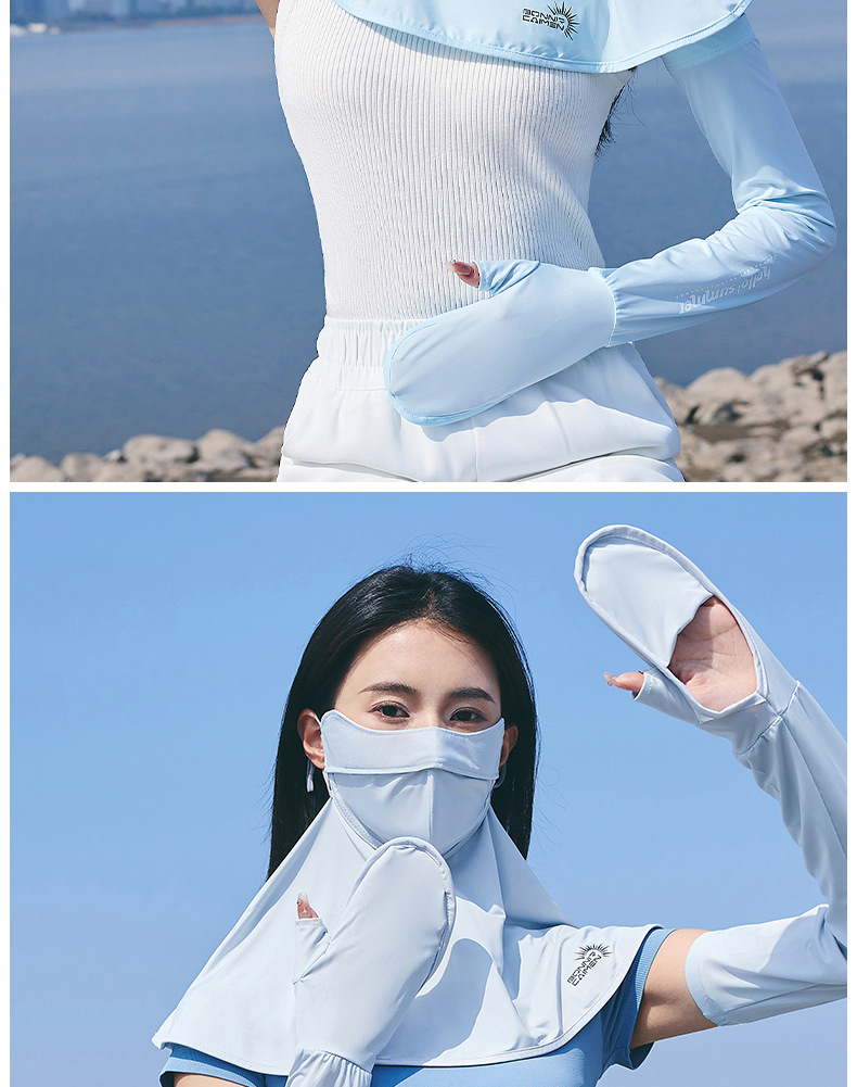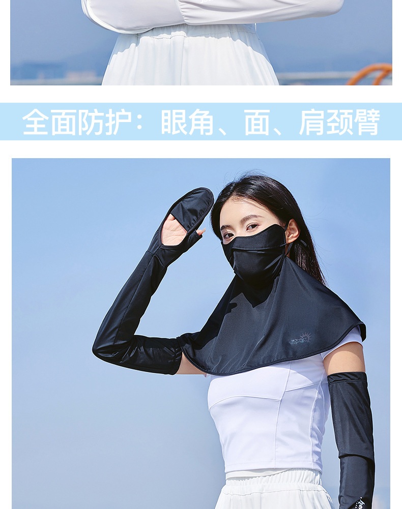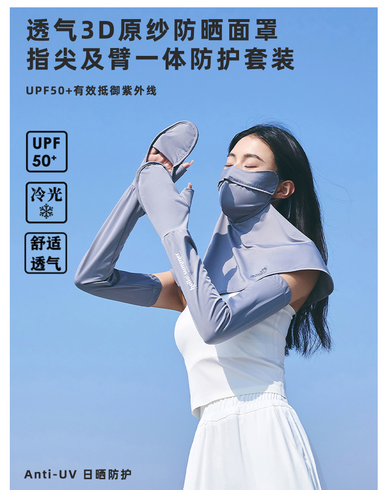 【透气3D原纱防晒面罩!指尖及臂一体防护套装】升级护眼角防晒口罩护颈夏防紫外线薄款透气遮脸遮阳面纱防晒面罩,立体叠层透气 舒适防晒。-ry