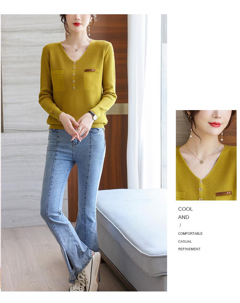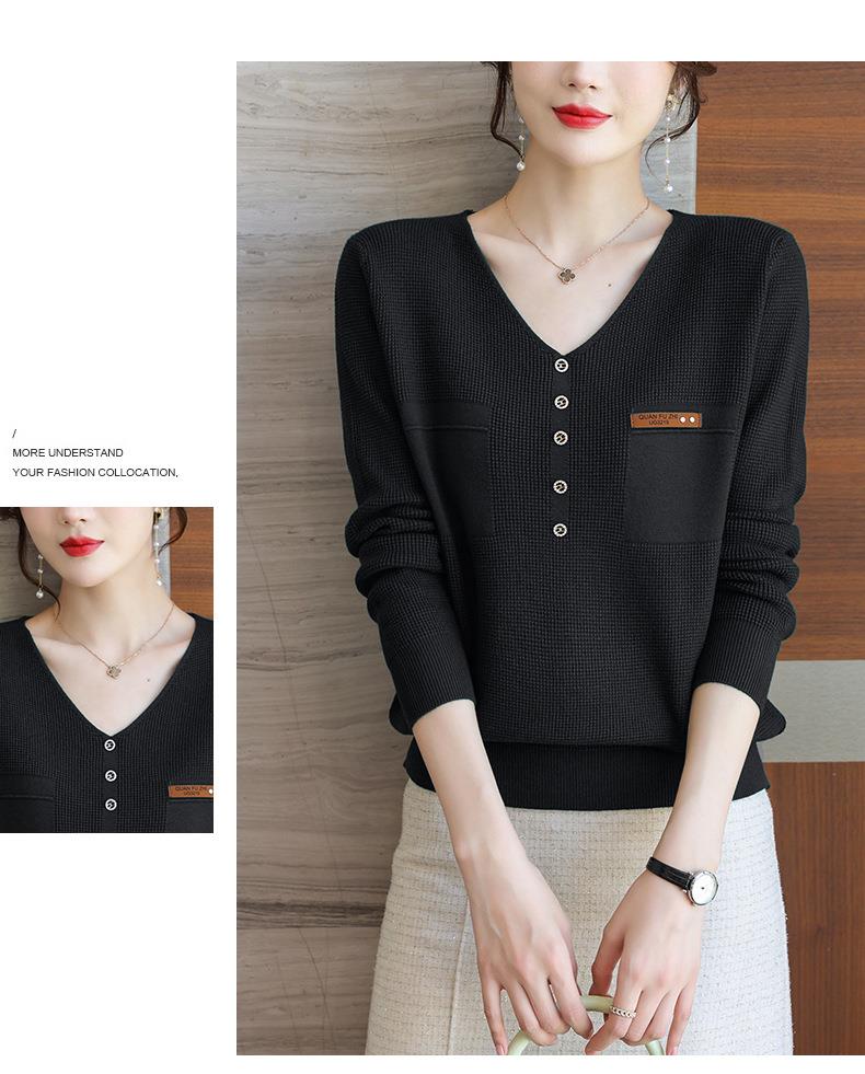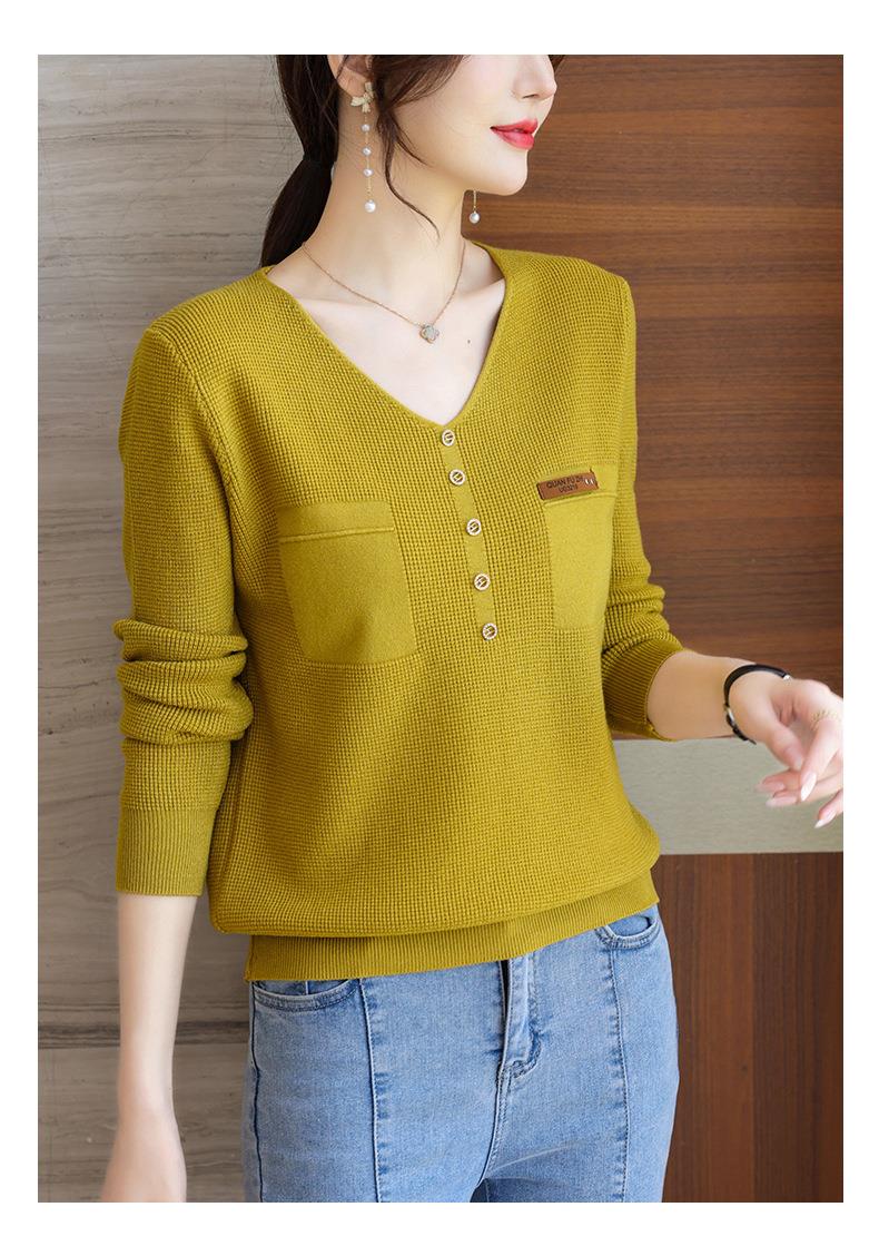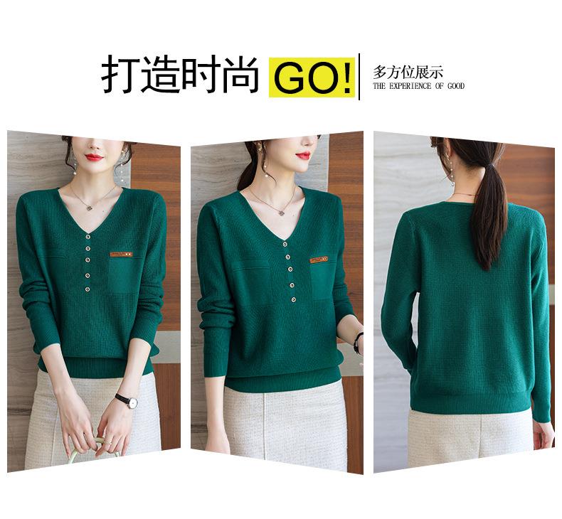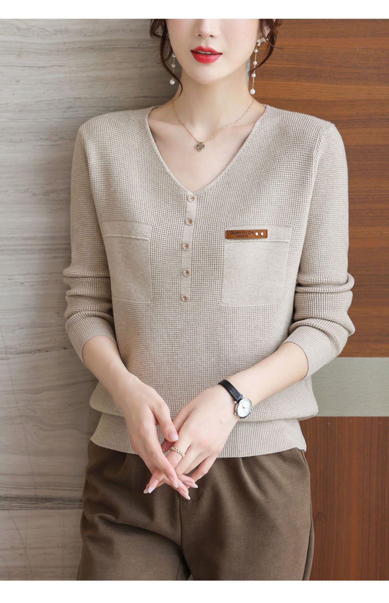 2023秋新V领针织衫女长袖款洋气别致长袖上衣打底衫