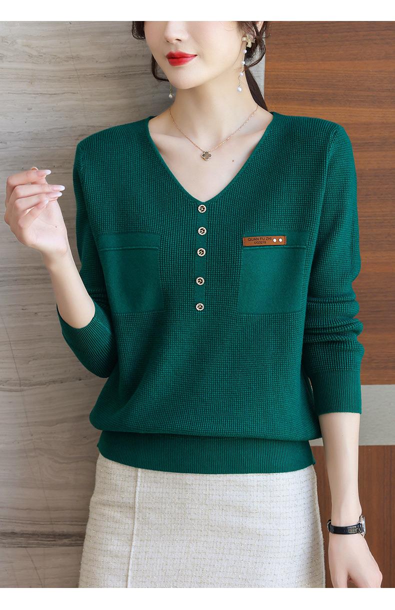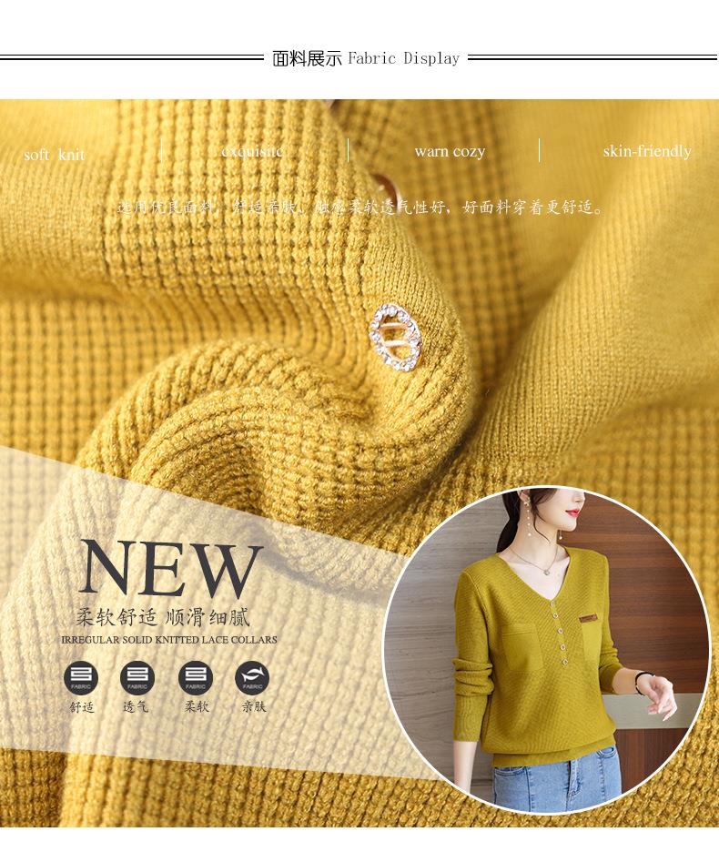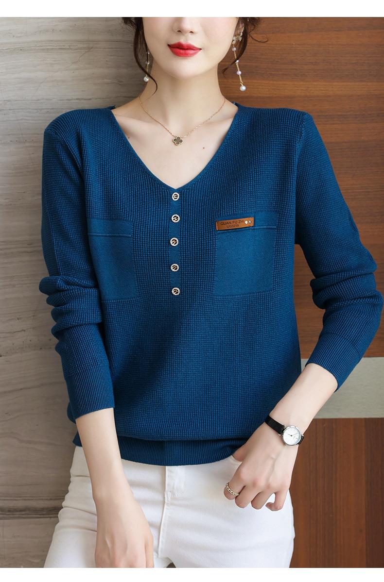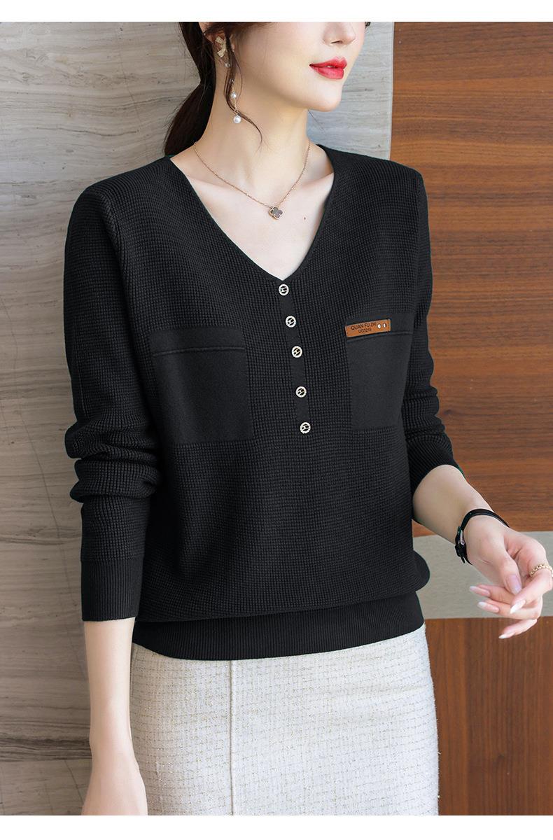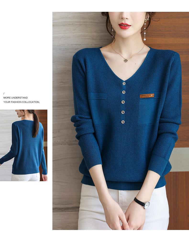 2023秋新V领针织衫女长袖款洋气别致长袖上衣打底衫