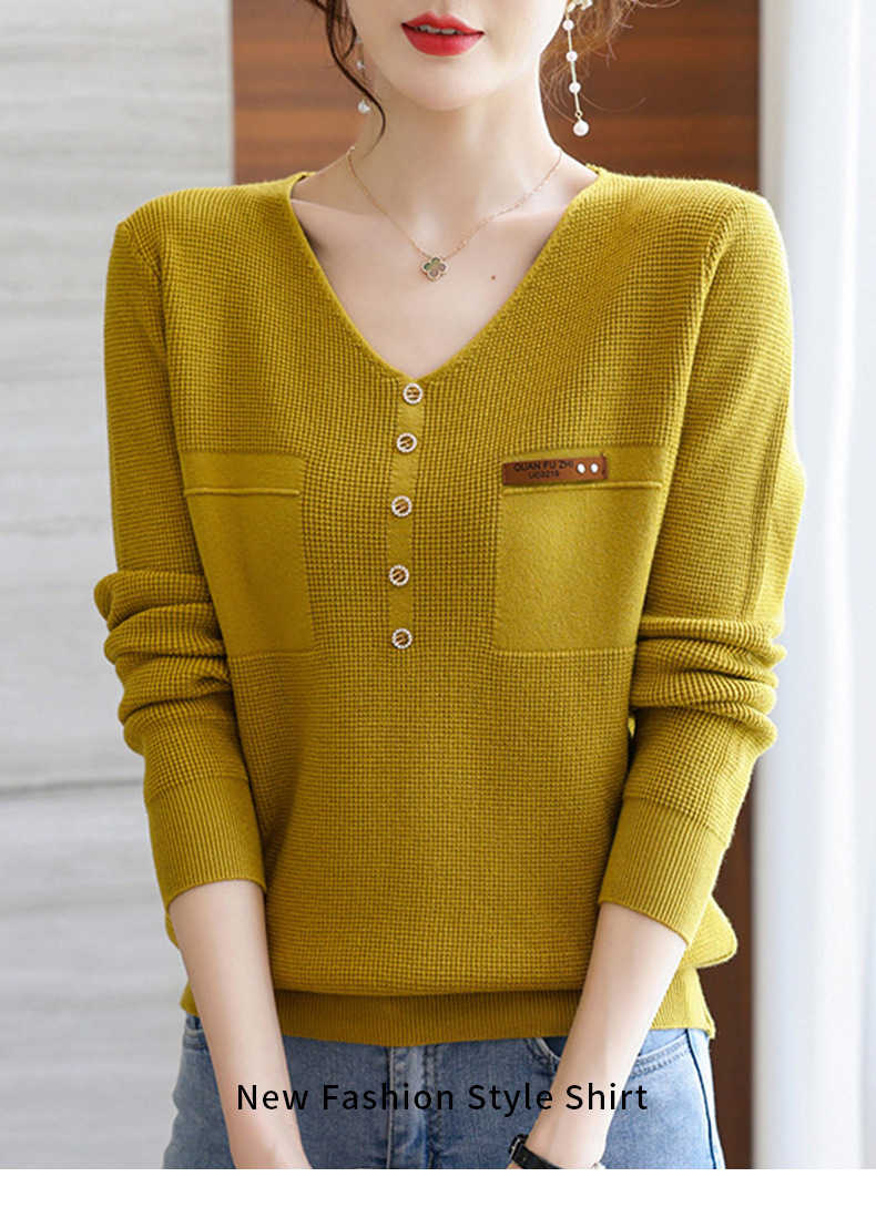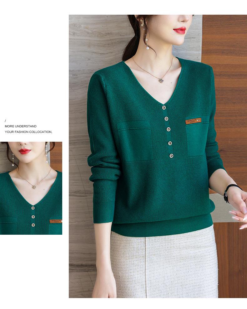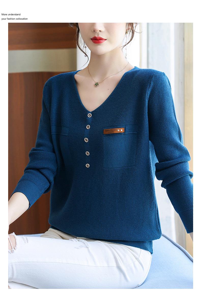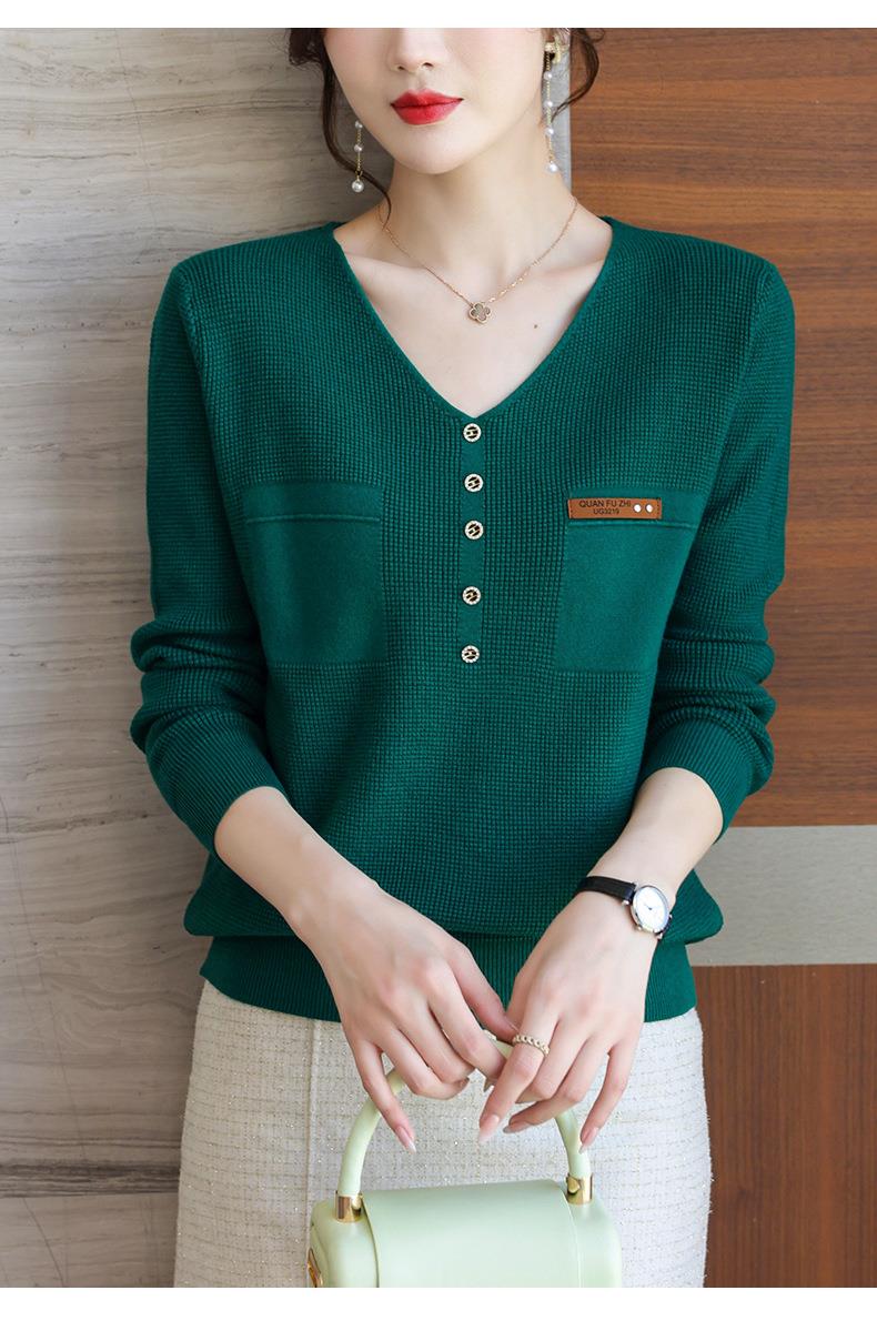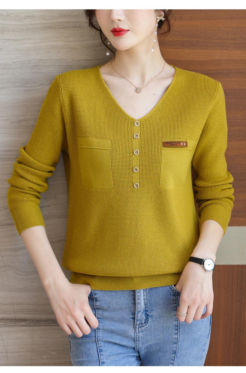 2023秋新V领针织衫女长袖款洋气别致长袖上衣打底衫