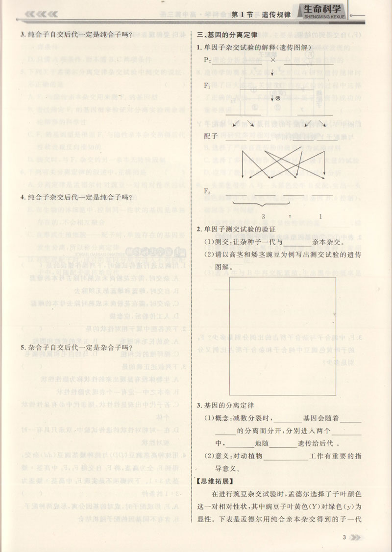 钟书金牌 金典导学案 生命科学 高中第三册 上海版 学练考三合一 适合参加新高考的学生使用 上海高中三年级学生生物总复习