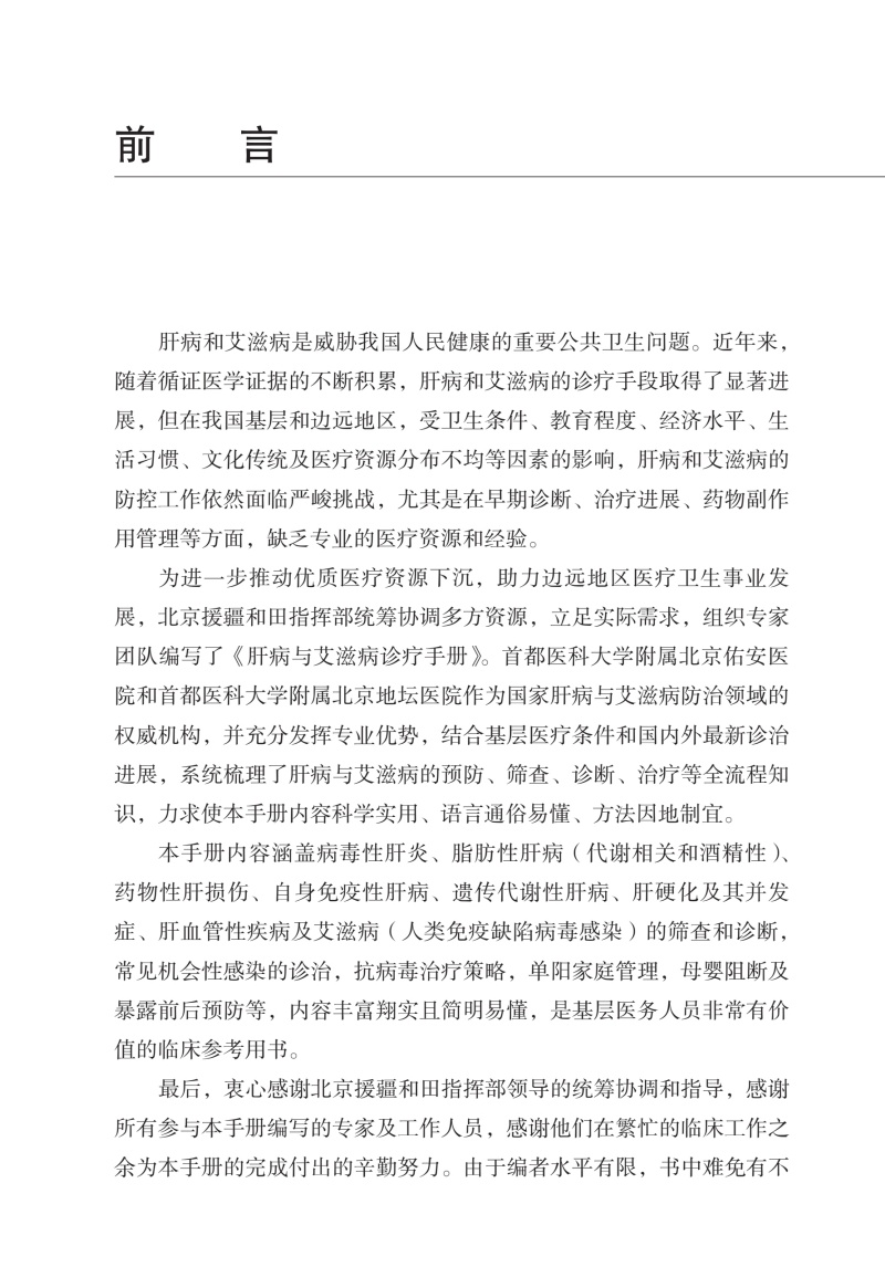 本手册涵盖肝病和艾滋病及其并发症两部分。第一部分详细介绍了各种类型肝病的病因、发病机制、临床表现、诊断方法、治疗原则及方案等;第二部分对艾滋病及其并发症病原学、流行病学、临床表现、诊断治疗及预防等方面进行了全面阐述。同时,本手册体现了肝病和艾滋病的最新研究进展与发展趋势。