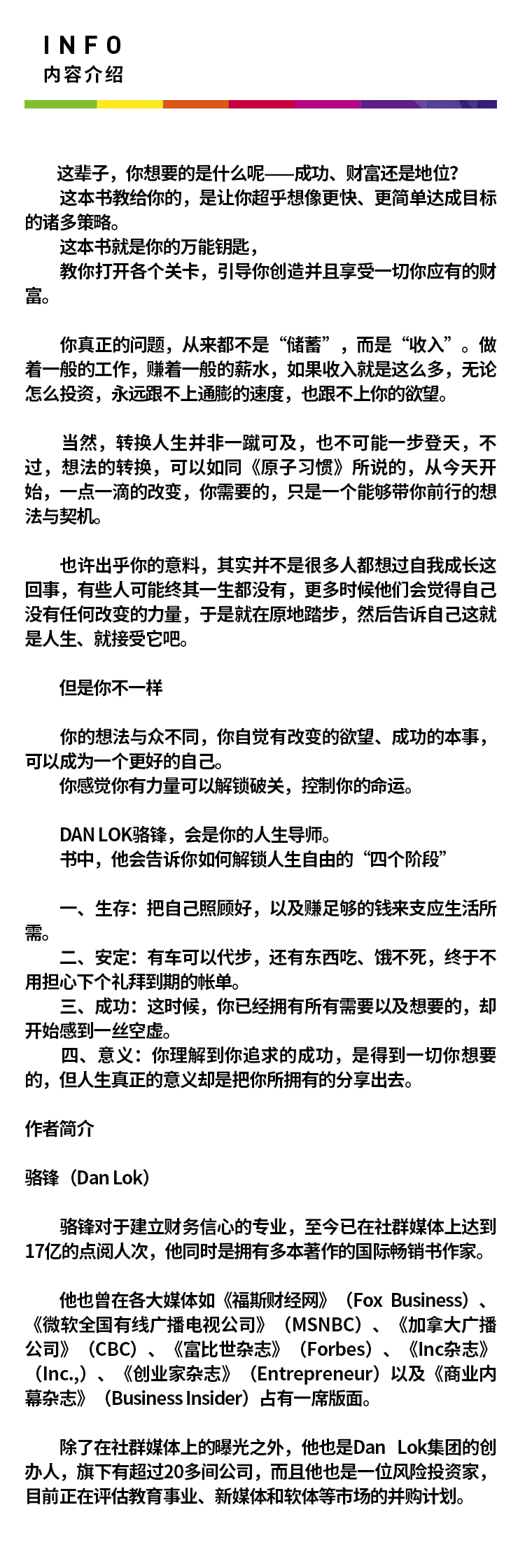 繁体|《解锁财务自由人生:华裔白手起家创业行销大师DAN LOK骆锋,教你主动掌控人生,引导你创造并享受属于你的财富与地位》