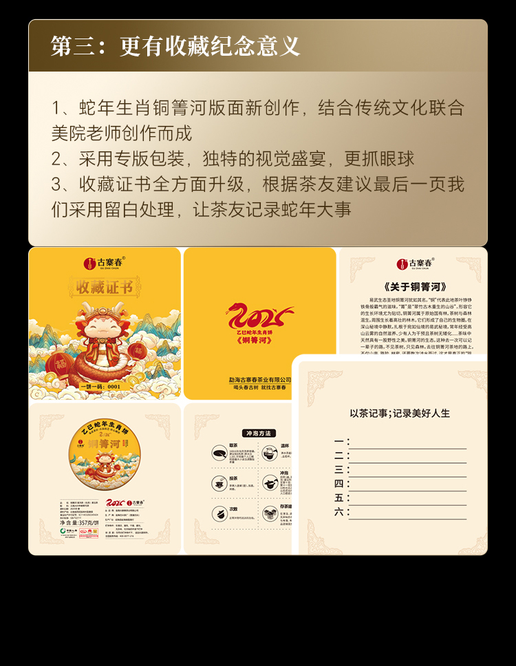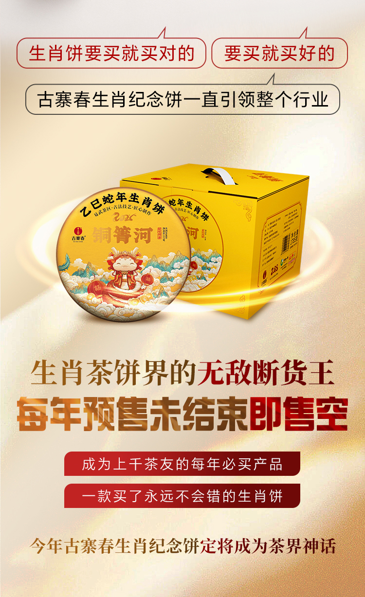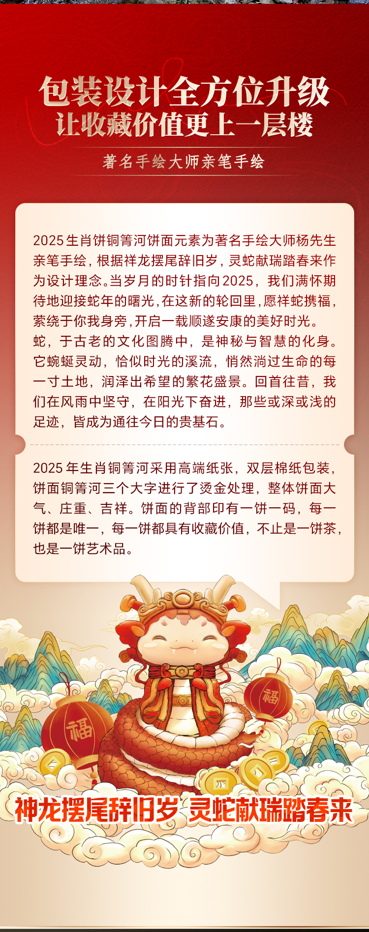【2025年春茶】【铜箐河】2025年乙巳蛇年生肖纪念饼重磅来袭!生肖茶饼界的无敌断货王,店铺必囤产品,选它准没错!357克/饼