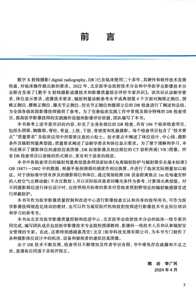 医学影像检查操作规范 DR成像分册(培训教材)隋岩 李广民 涵盖全身各部位MR检查项目 每个检查项目包括患者准备等人民卫生出版社