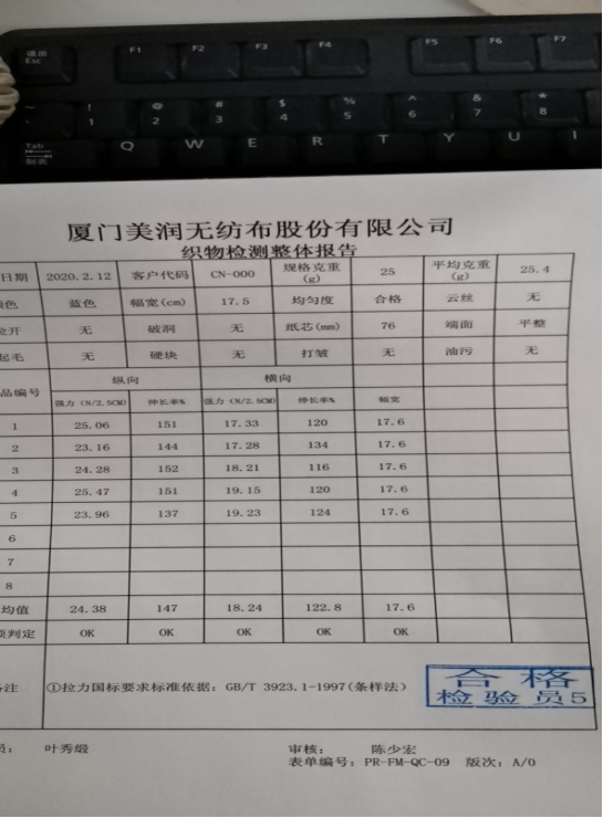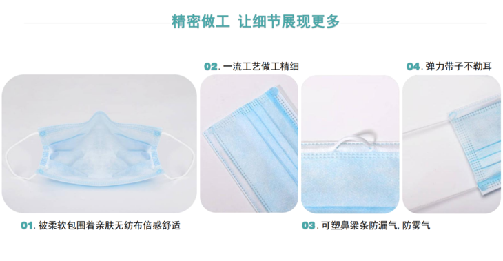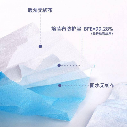 2、是无纺布,无纺布是接触皮肤的,同时它也起到一定的过滤作用。好坏还是在于它的原料和工艺,成本在于是否使用的是医用聚丙烯原料。市场上大家感觉到味道大,用了以后脸部过敏的(口罩脸)大部分就是用工业聚丙烯做的无纺布,生产的口罩。所以口罩原料也要有检测报告的。