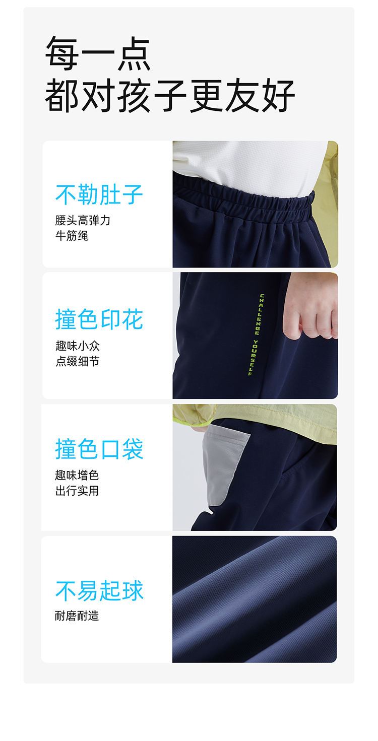 fx-【凉感速干防晒裤 UPF50+】儿童透气撞色口袋休闲裤 PXK2422
