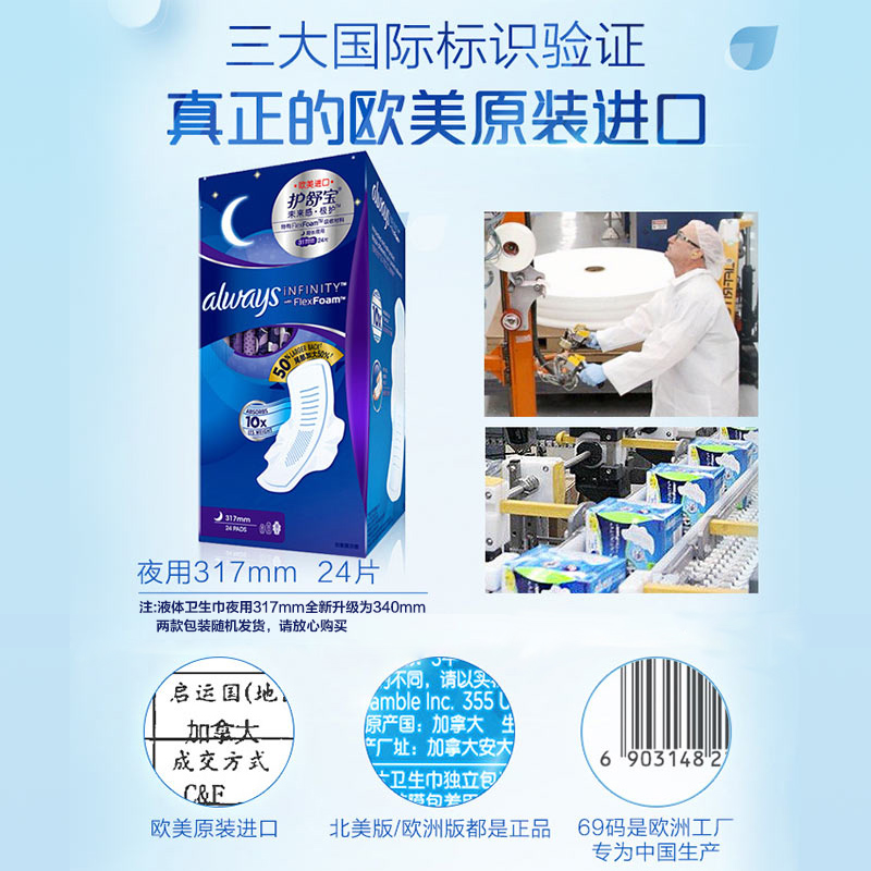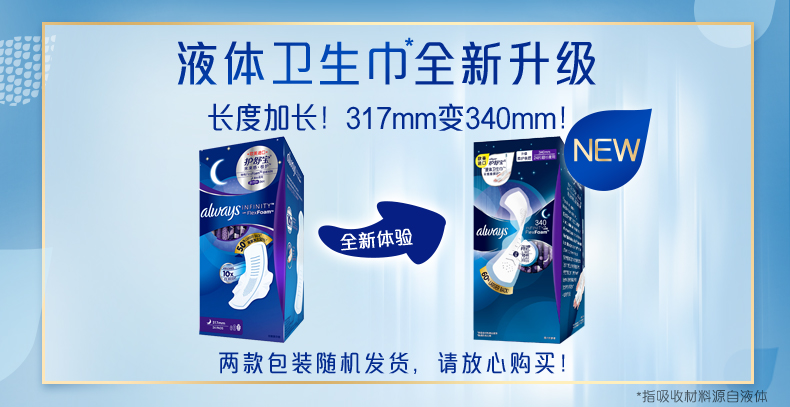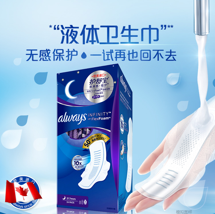 护舒宝未来感极护液体卫生巾夜用317mm24片(计价单位:包)混色(新老包装随机发货)(BJ)