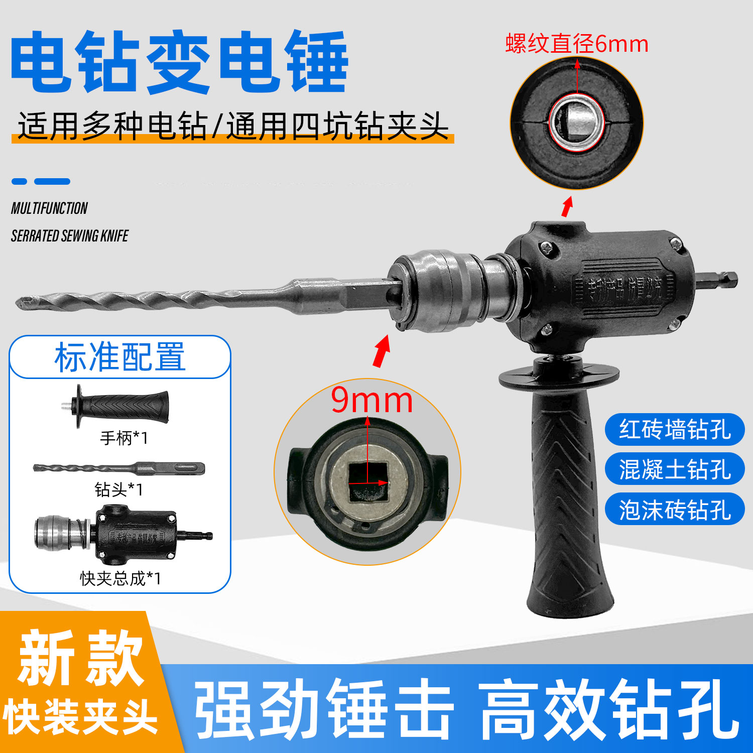 【货号05328】升级款手电钻变电锤转换器锂电钻改电锤改装冲击钻钻孔打眼神器