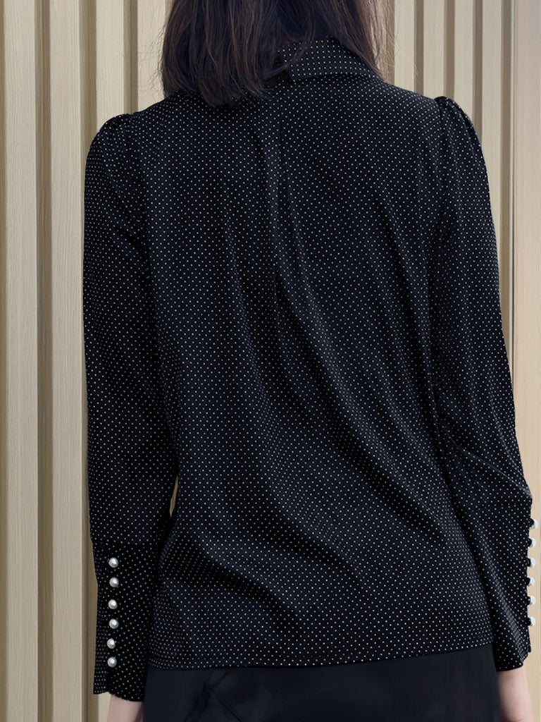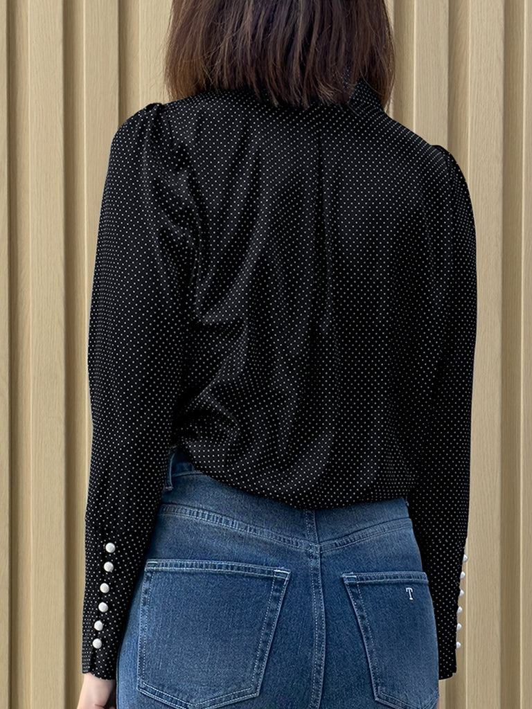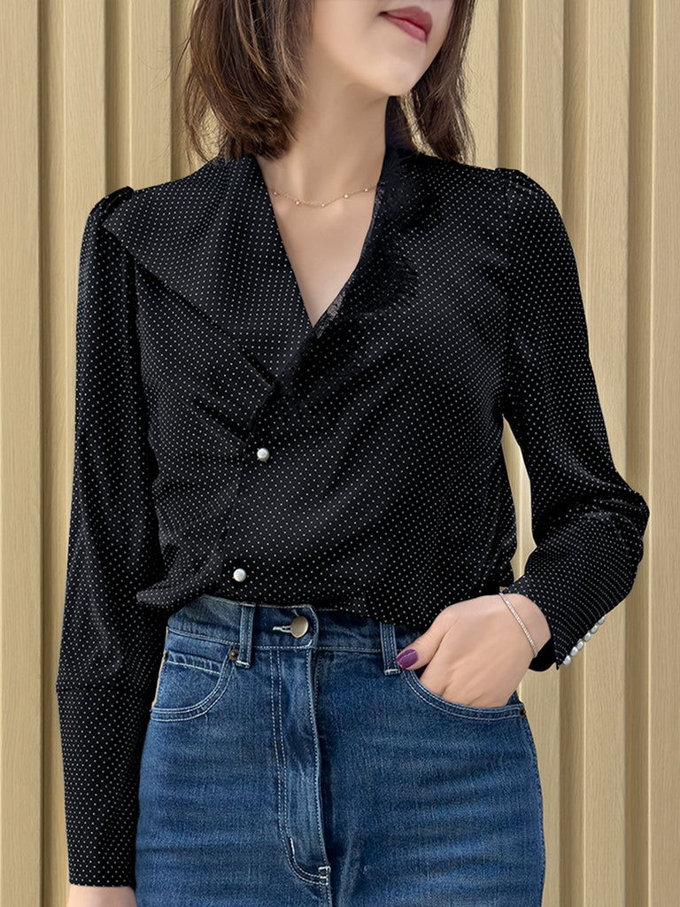 TYNVIE 不对称蕾丝领口长袖衬衫-黑底白点