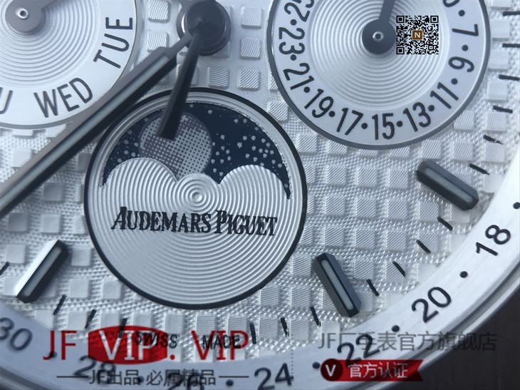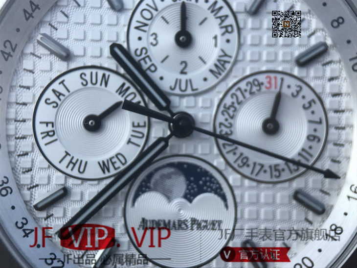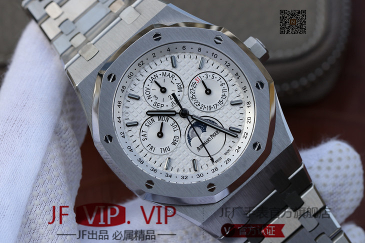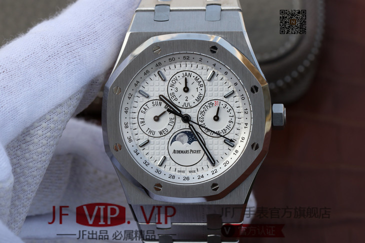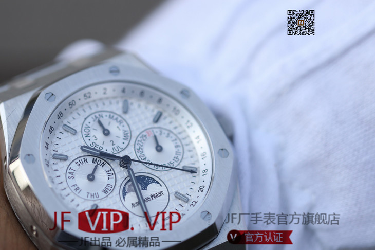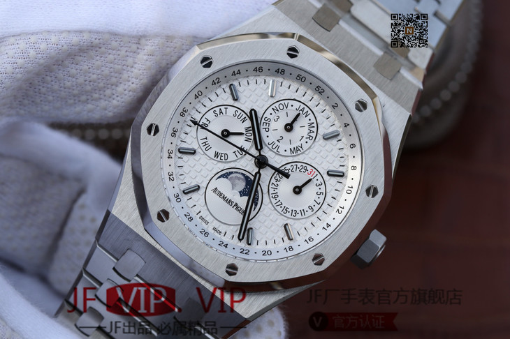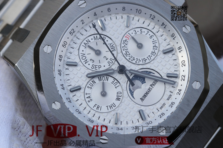 JF爱彼皇家橡树26574ST.OO.1220ST.01。功能:日期显示、星期显示、月份显示、年历显示、万年历、月相进口机克隆原装5134自动机械机芯,41毫米,男士手表腕表