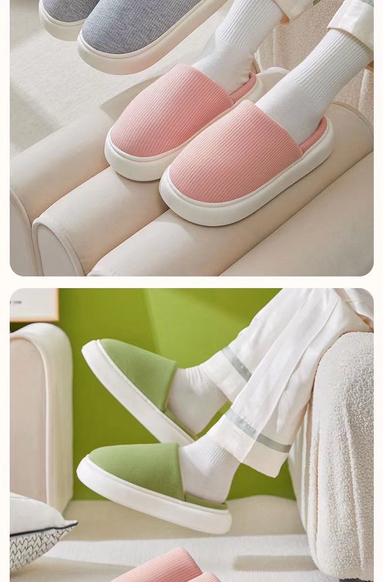 【YW】无忧购男女简约纯色舒适针织布乳胶居家棉拖鞋9258(截单后3-5天发货)