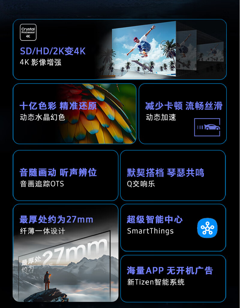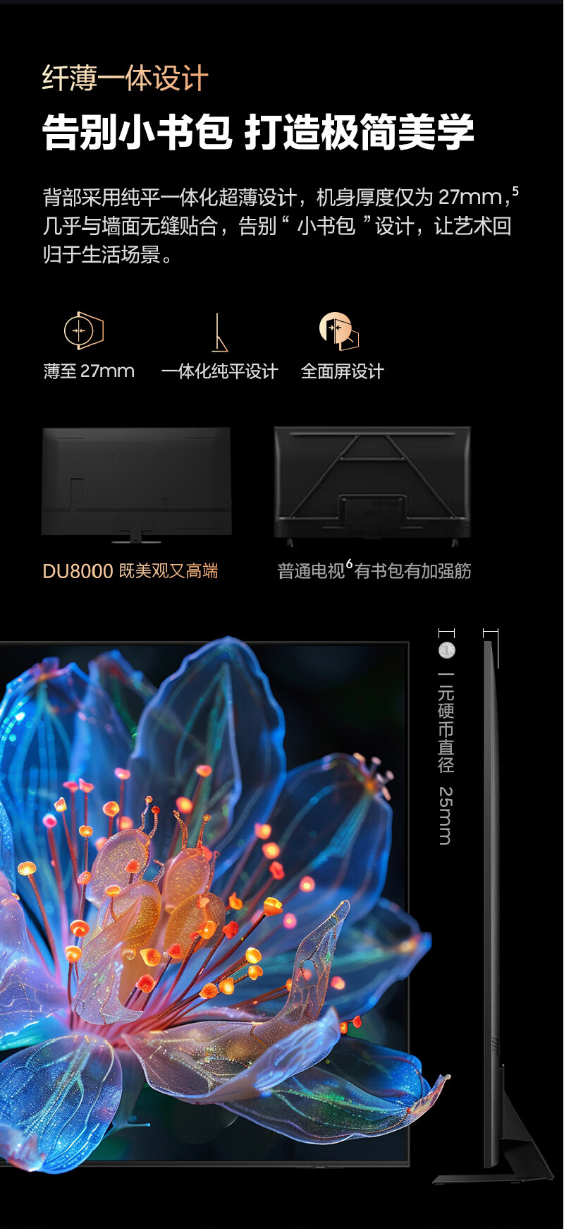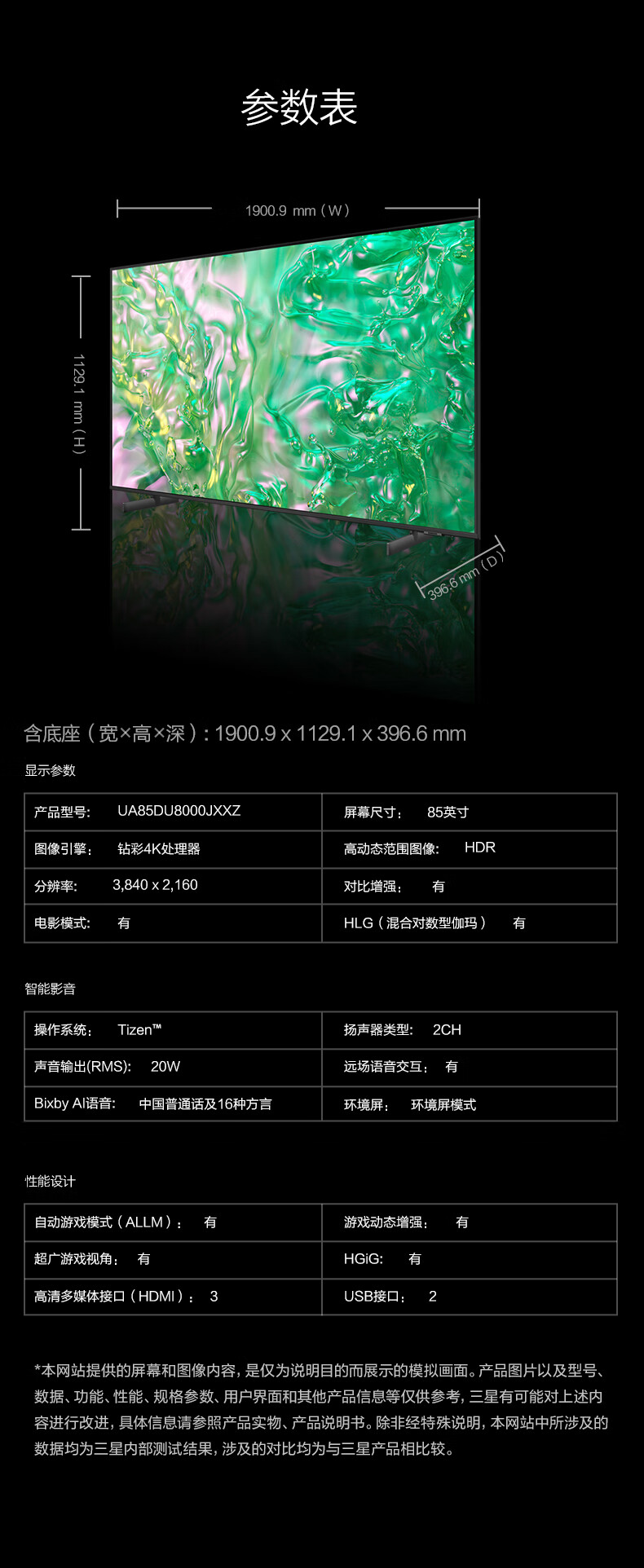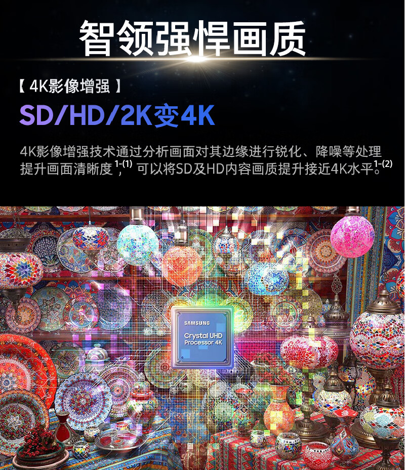 【年终燃购】三星(SAMSUNG)DU8000系列 平板液晶AI电视 超薄4K AI智能补帧 无开机广告 55/65/75/85英寸