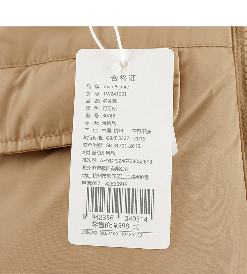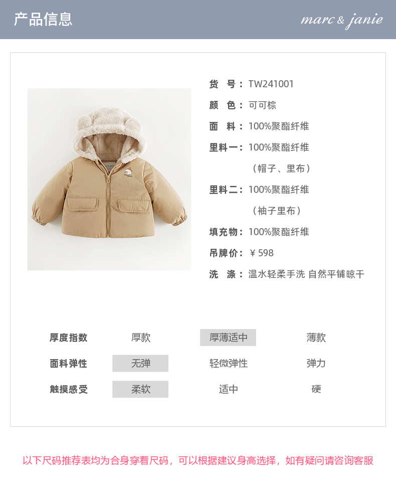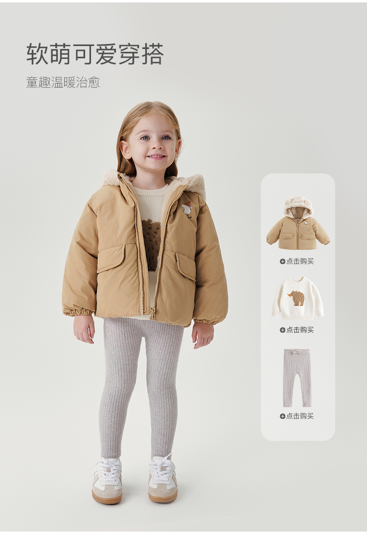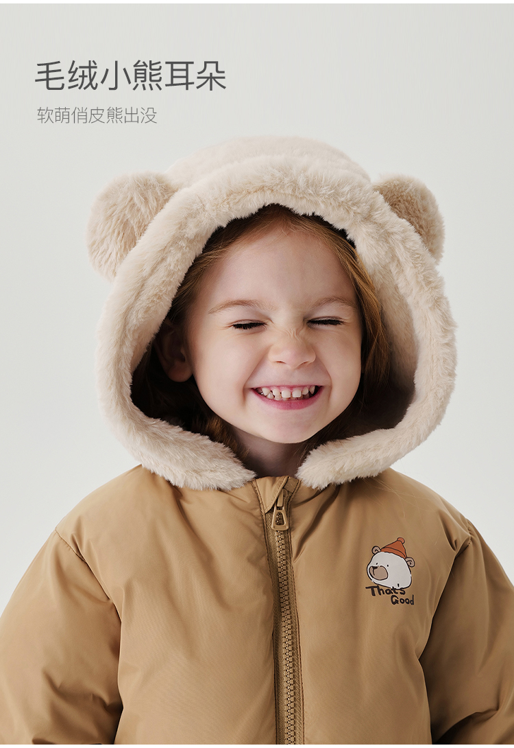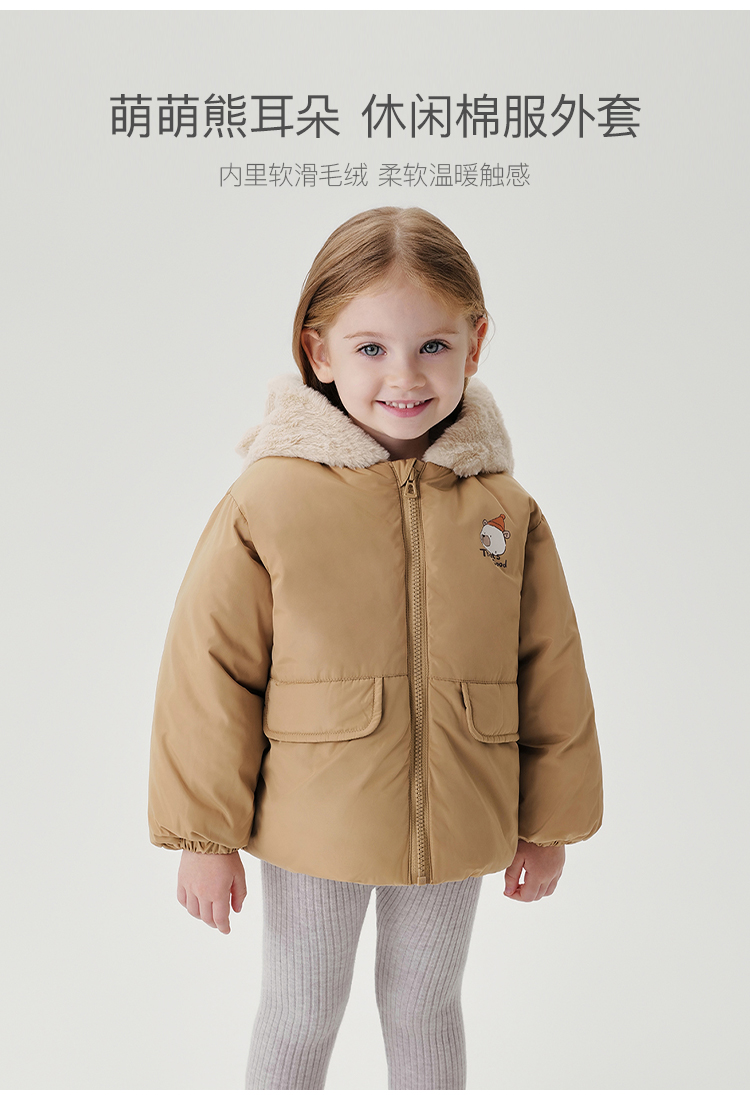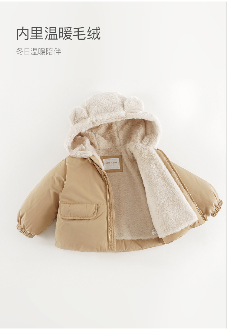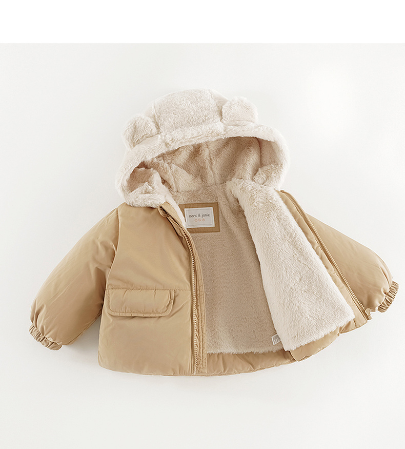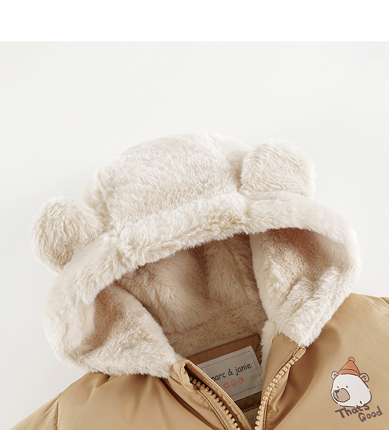 马克珍妮男童小熊耳朵保暖棉服儿童夹棉外套宝宝冬装新款241001