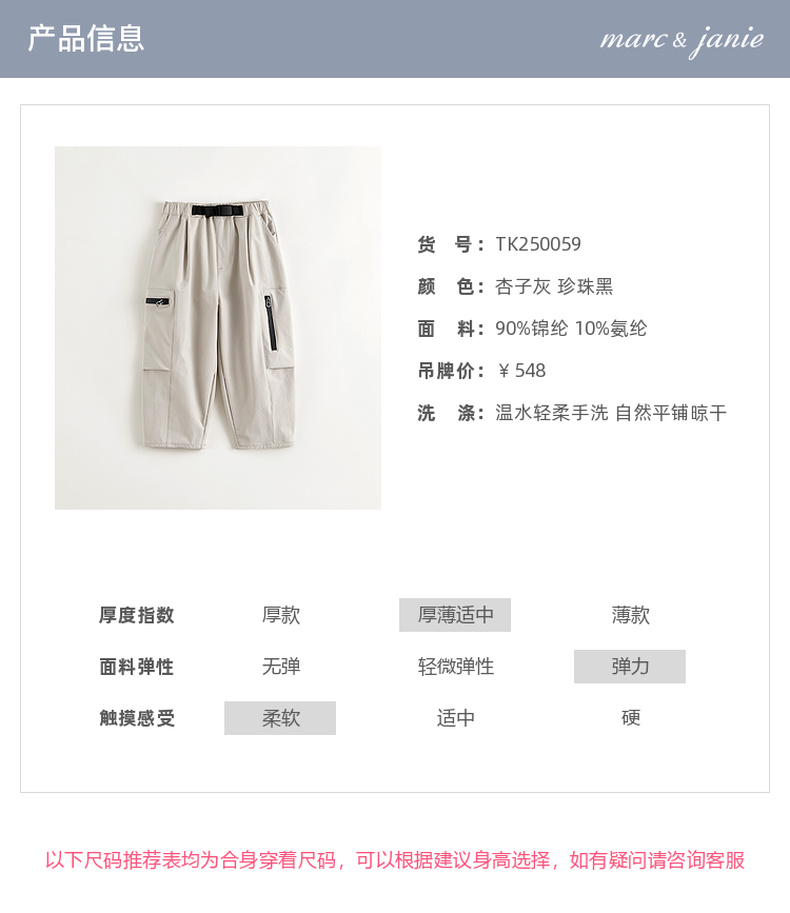 【弹力速干】马克珍妮男童山系户外轻量机能裤2025新款250059
