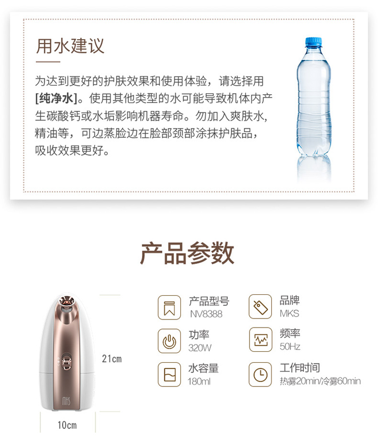 MKS 冷热香薰蒸脸器 冷热双喷纳米喷雾补水脸部美容仪(NV8388)(包邮直发)