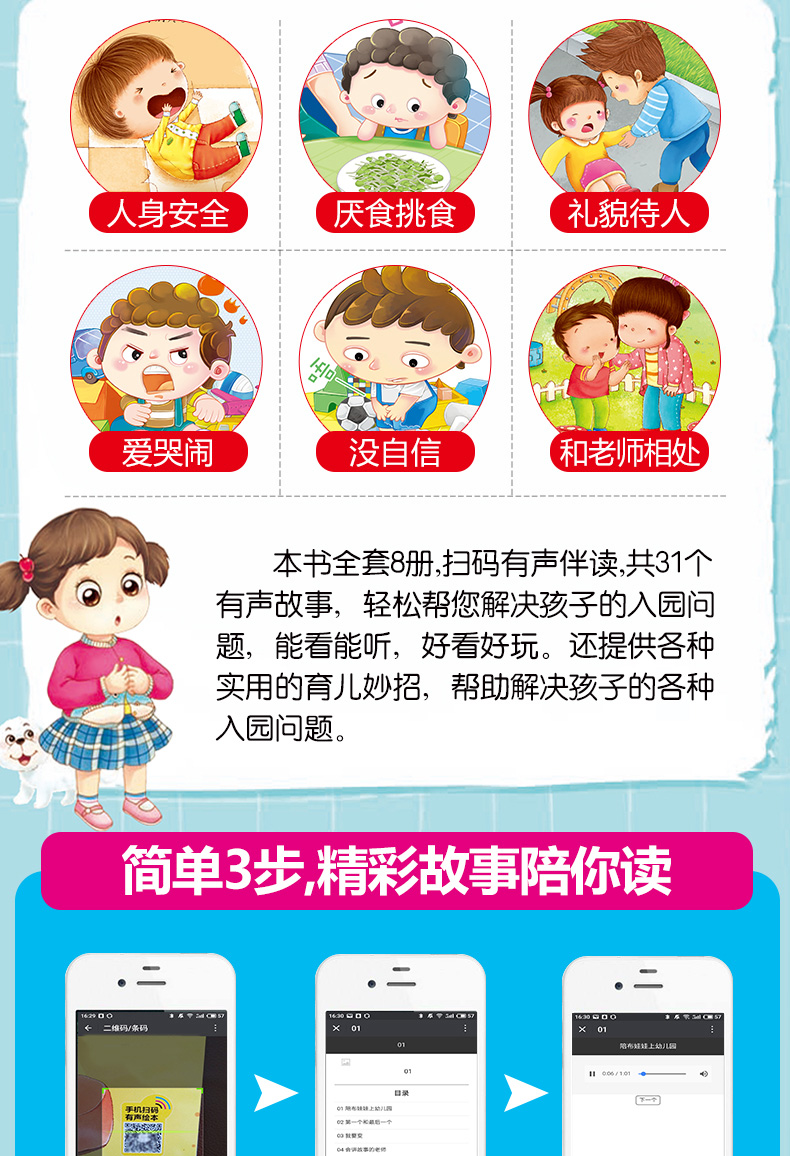 A08【3-6岁】《宝贝入园一二三》(全8册)有声绘本【15元付邮领书】